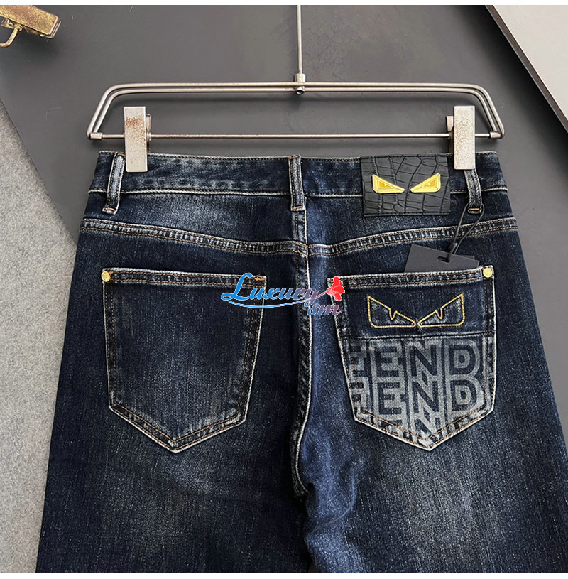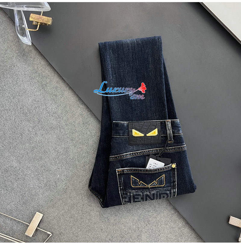 FENDI-03284 펜디 네이비 백 버그 아이 장식 청바지 남성용