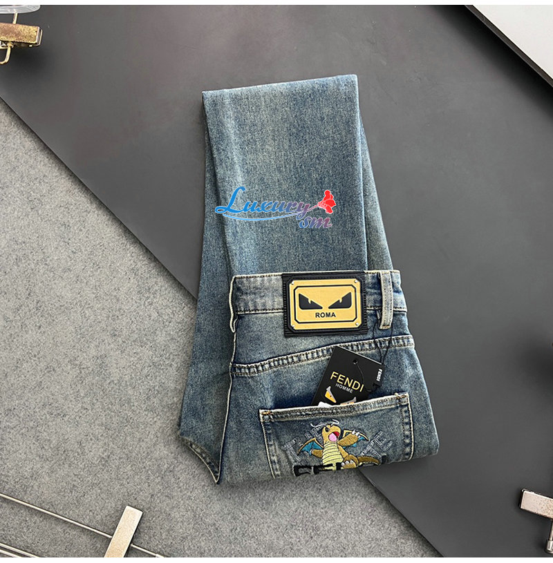 FENDI-032810 펜디 블루 아플리케 장식 청바지 남성용