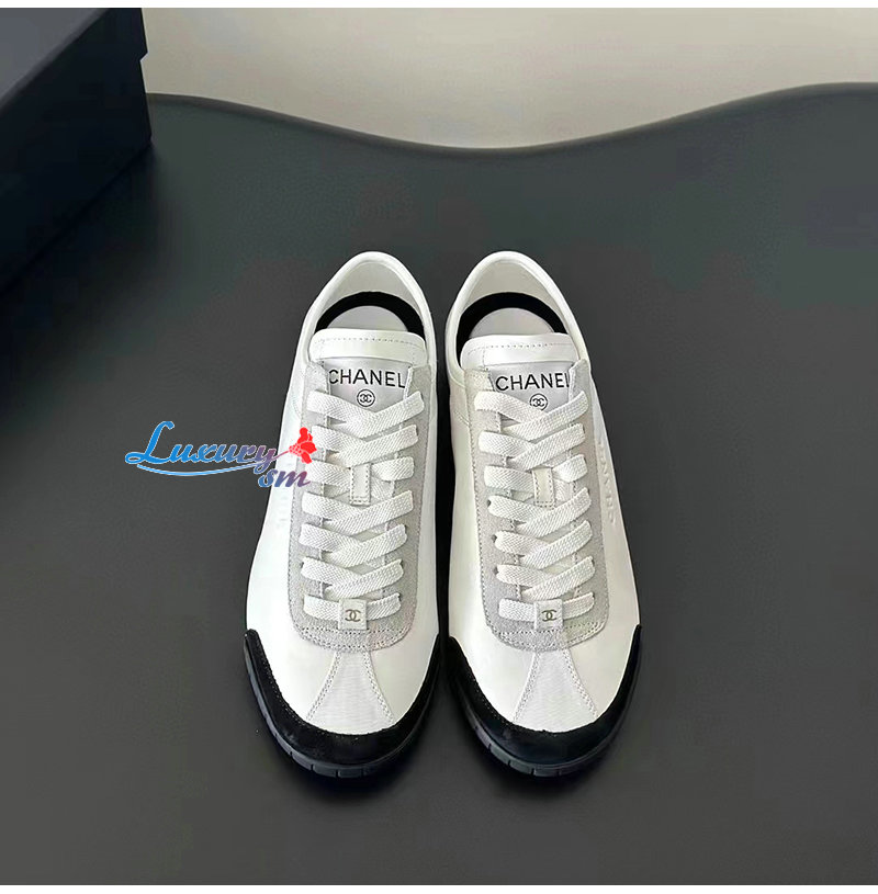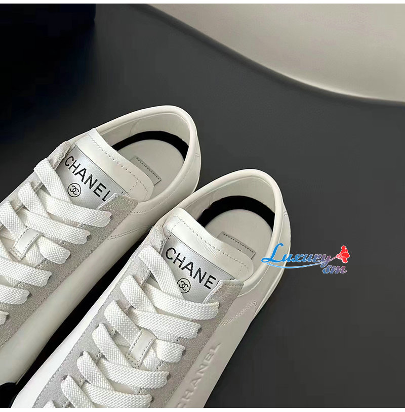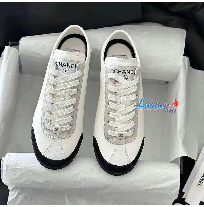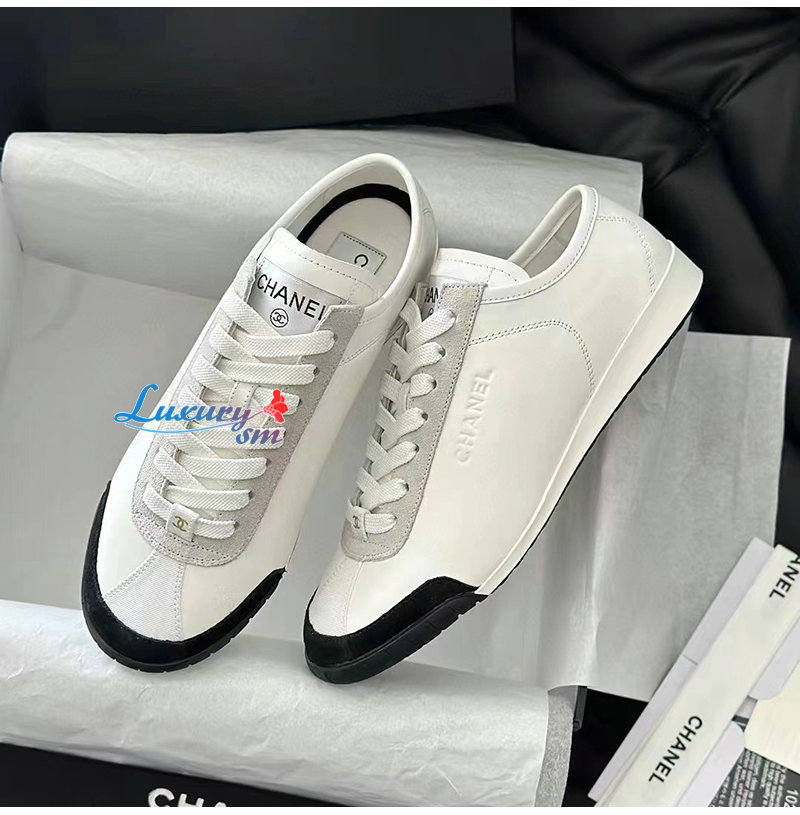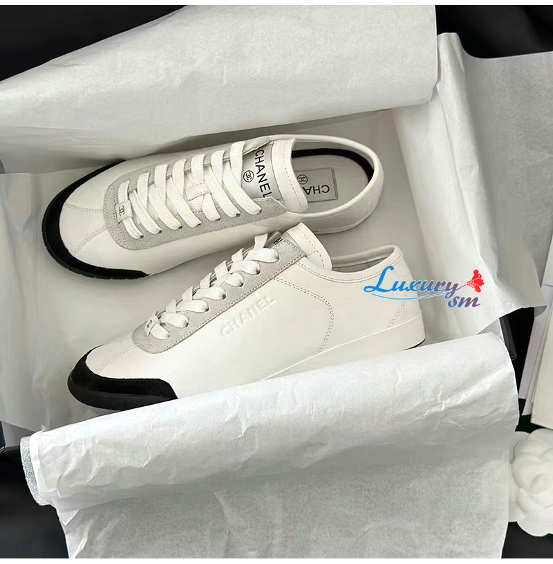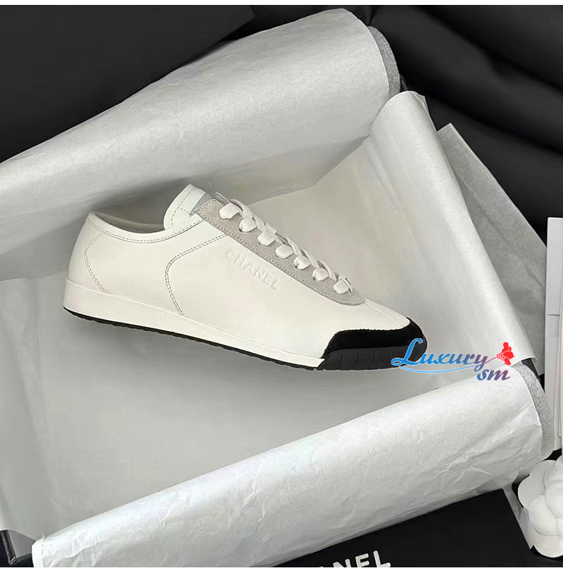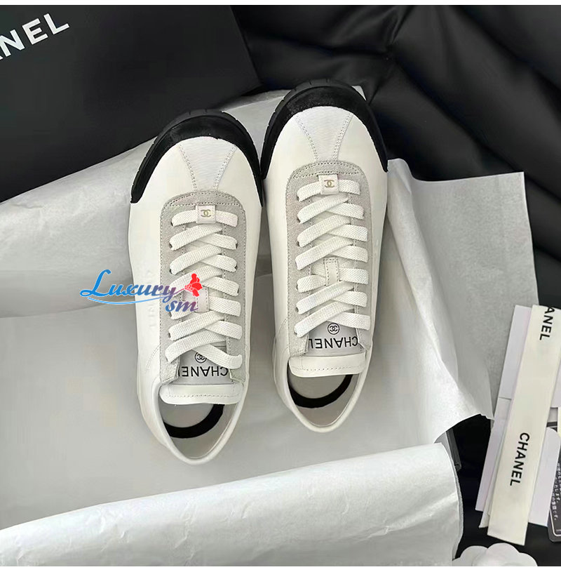 CHANEL-G45714 샤넬 화이트 카프스킨 스니커즈