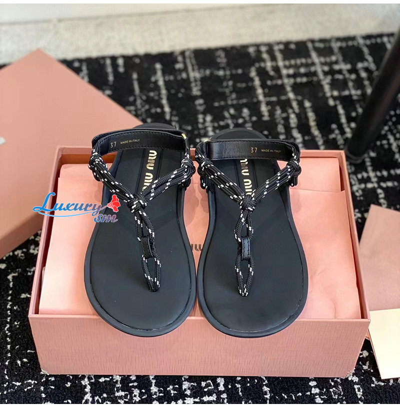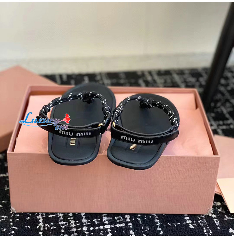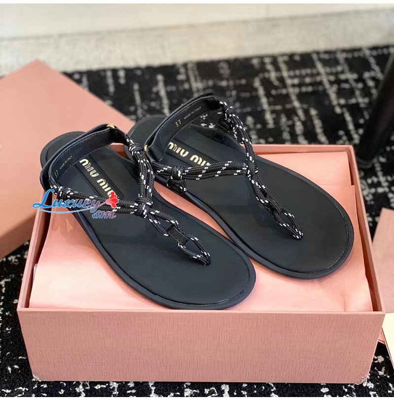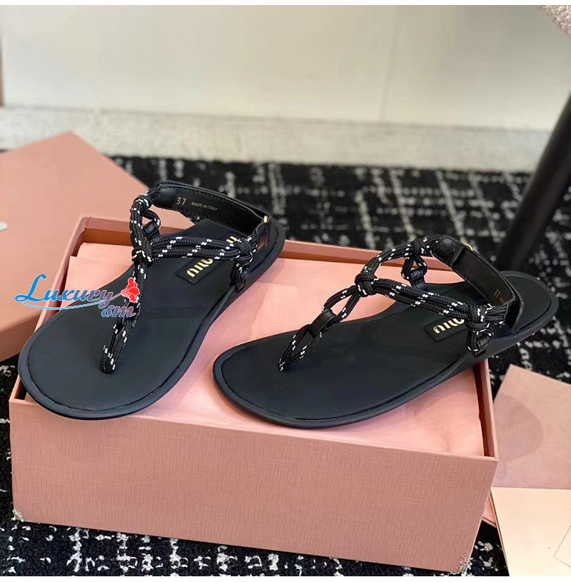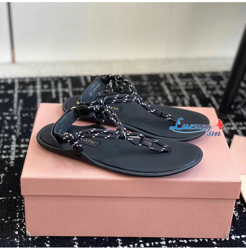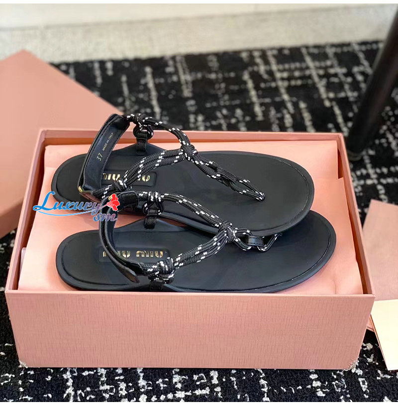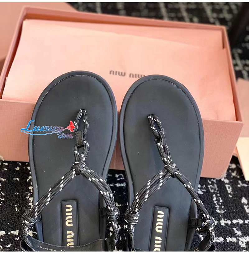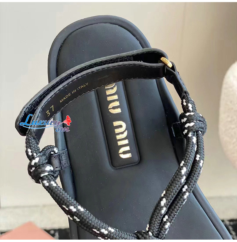 MIUMIU-5Y184E 미우미우 블랙 Riviere 코드 가죽 샌들 여성용