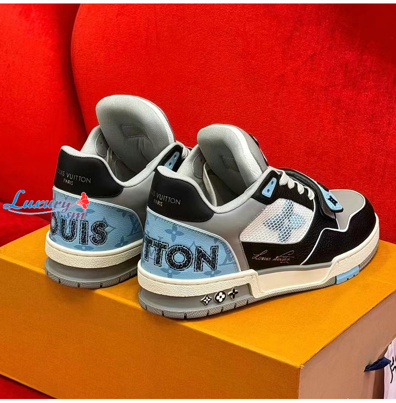 LOUIS VUITT**-1A9ZIE 루이비통 블루 모노그램 데님 LV 트레이너 스니커즈