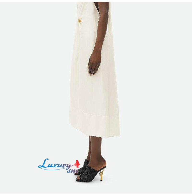 골드 메탈 놋 힐이 돋보이는 뮬. 가죽 아웃솔을
