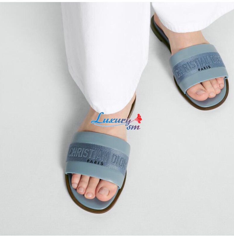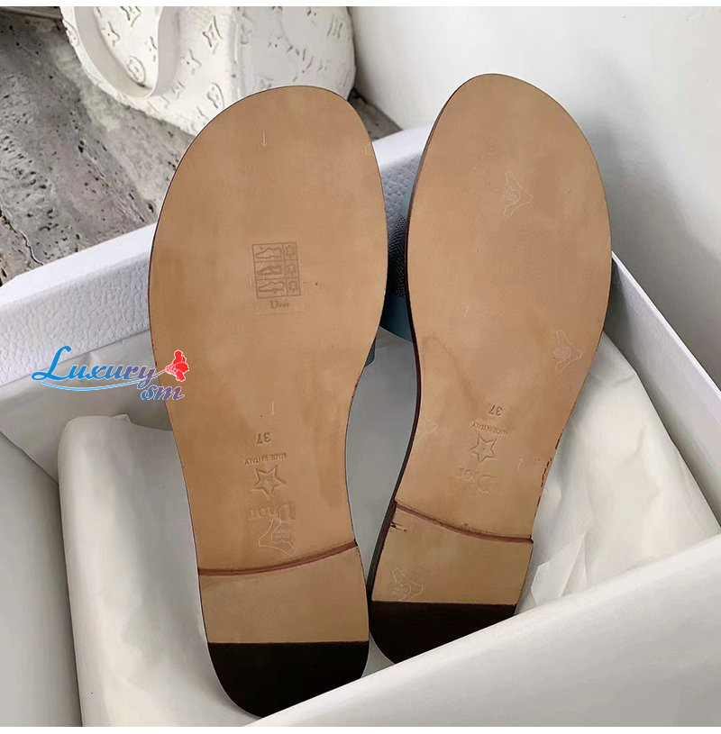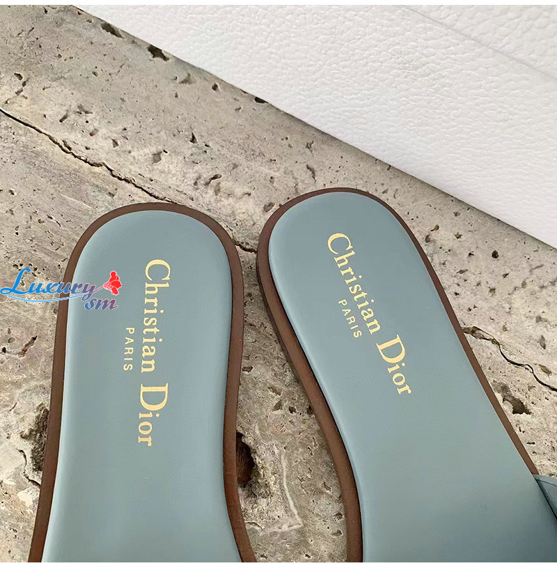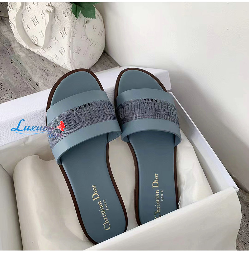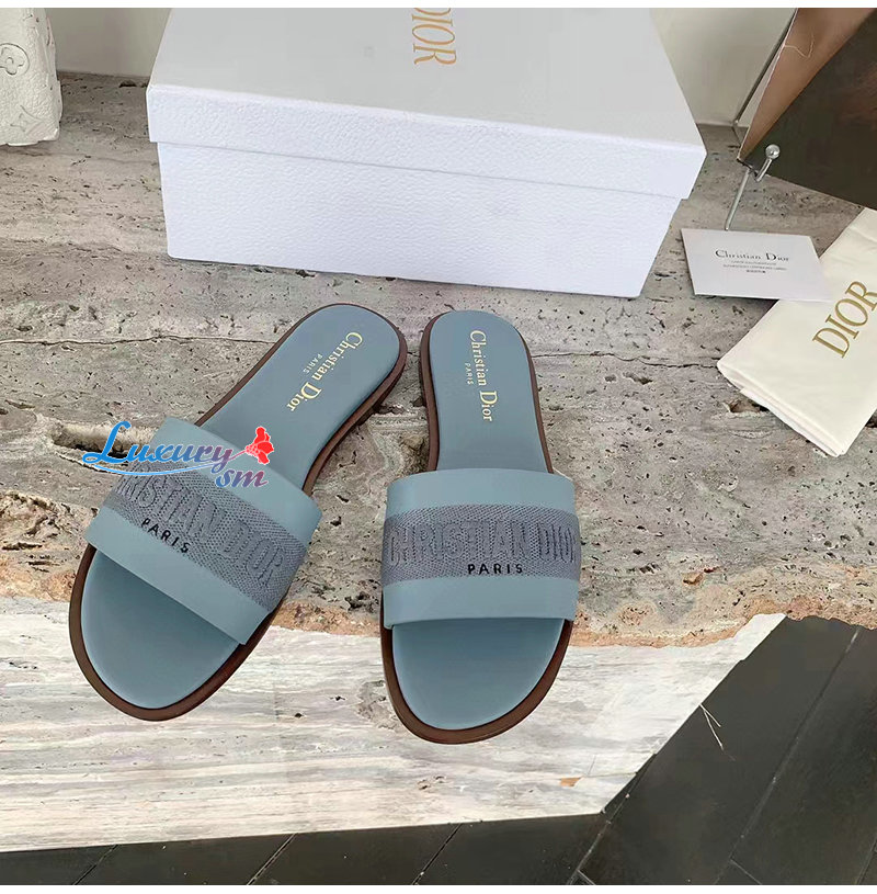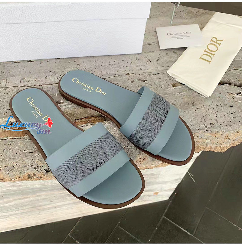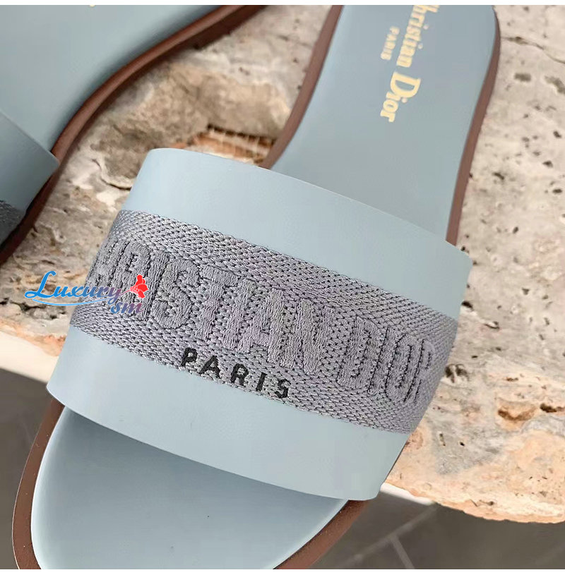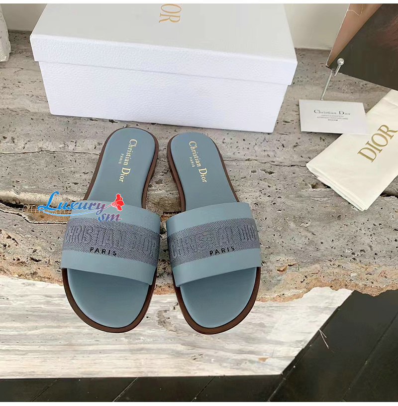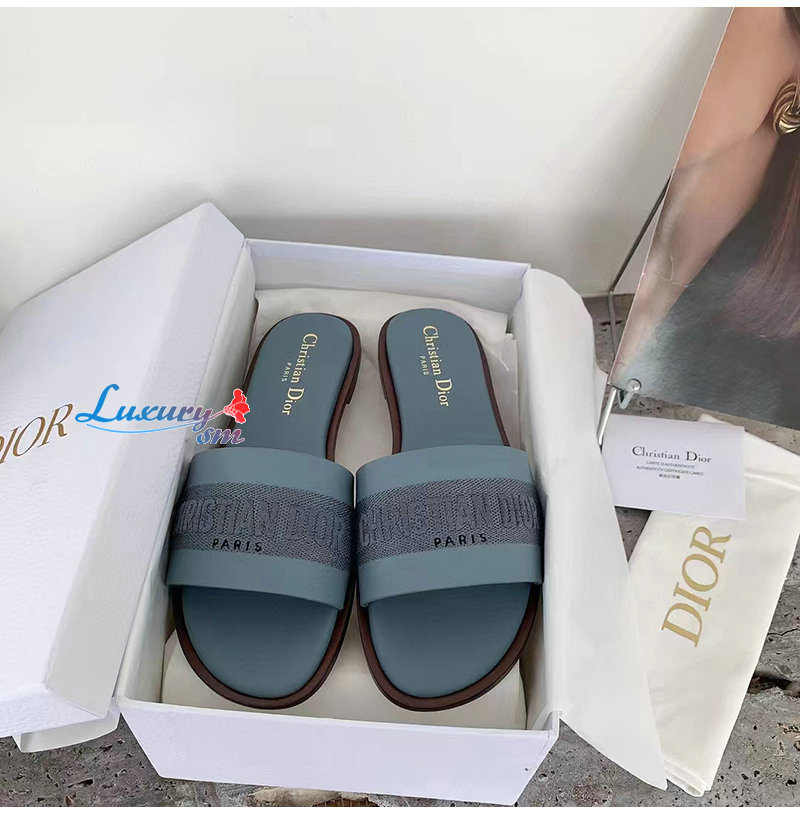 DIOR-KCQ986 디올 파스텔 블루 송아지 가죽 Dway 뮬 여성용