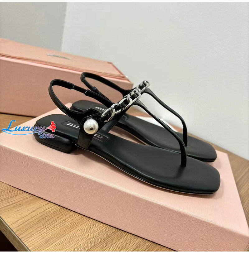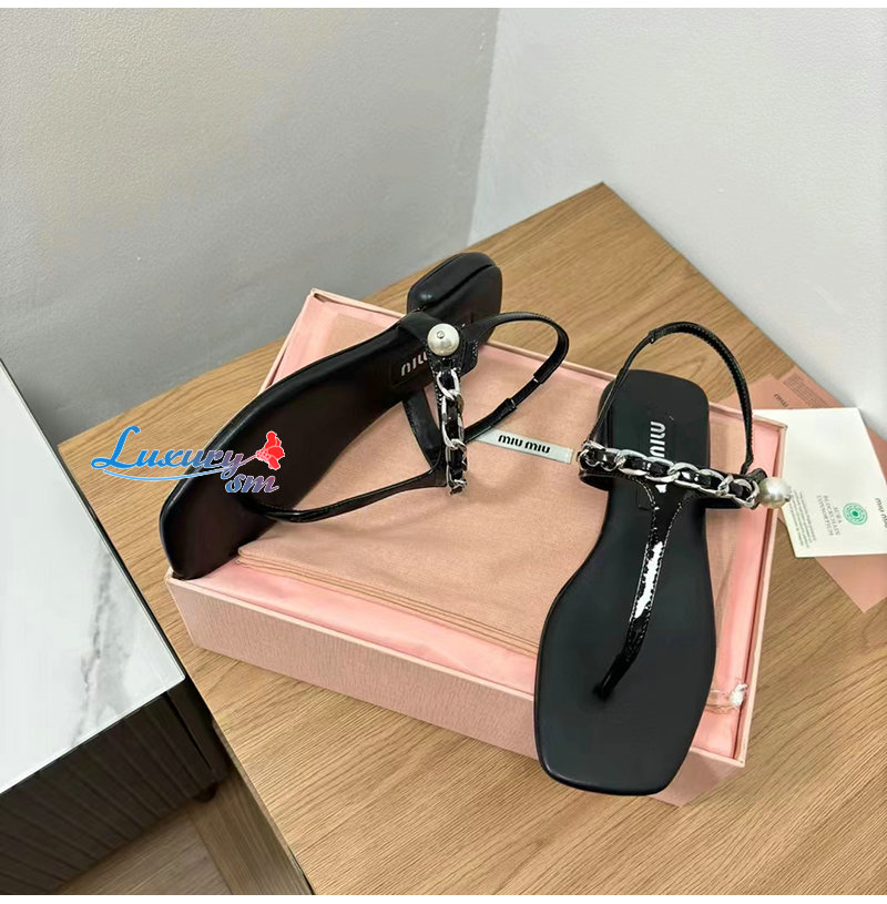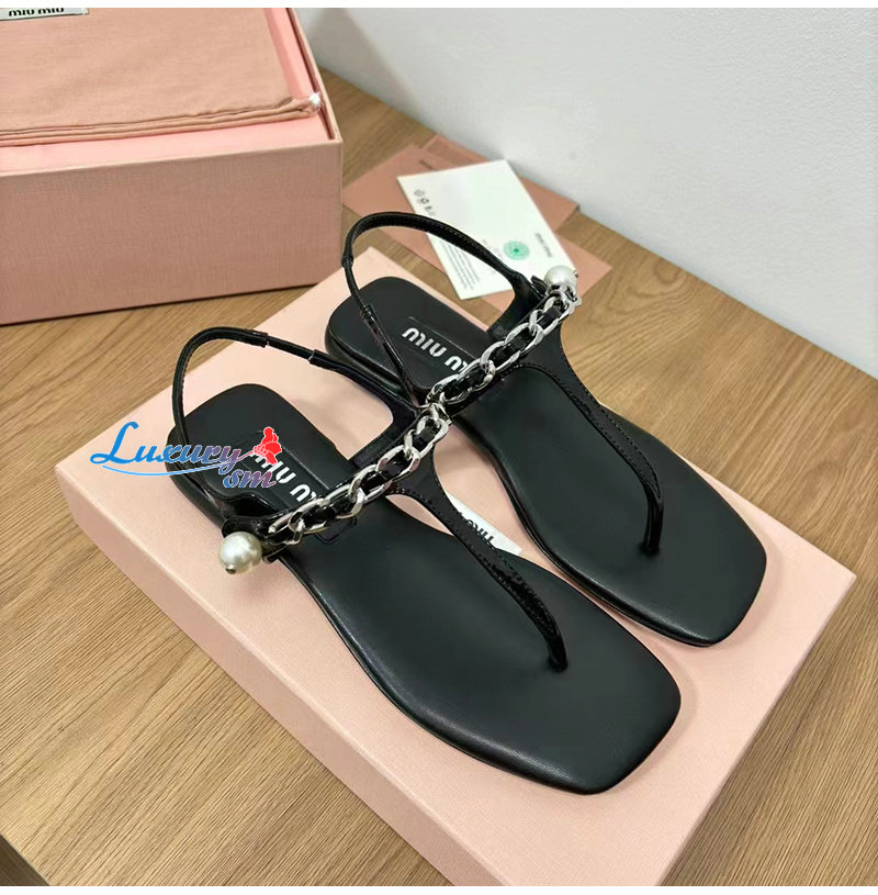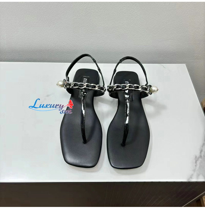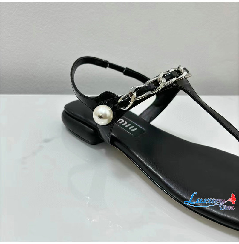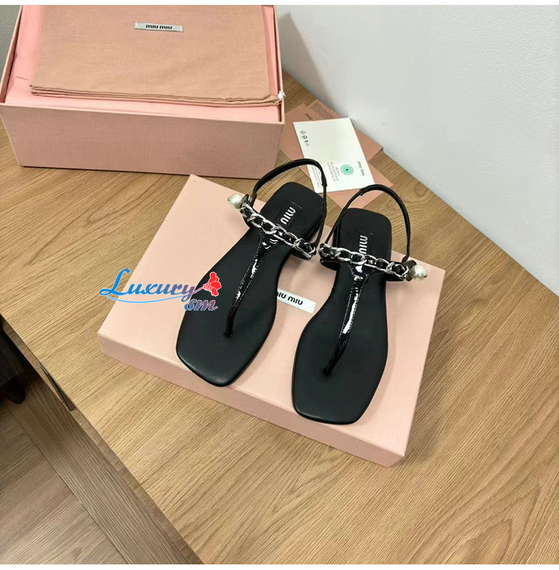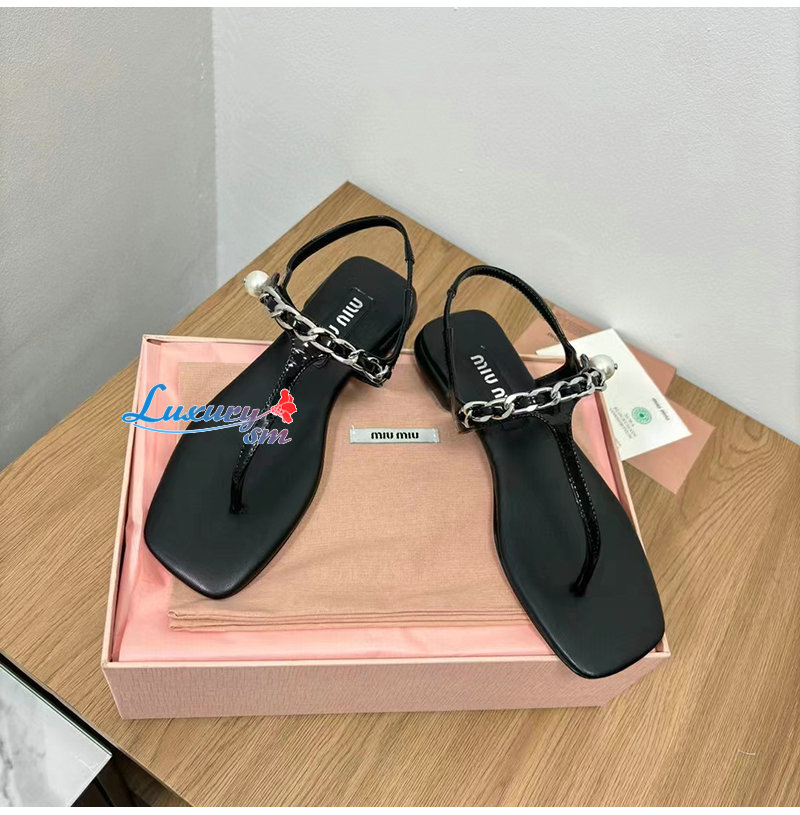 MIUMIU-5Y142E 미우미우 블랙 페이턴트 가죽 통 샌들