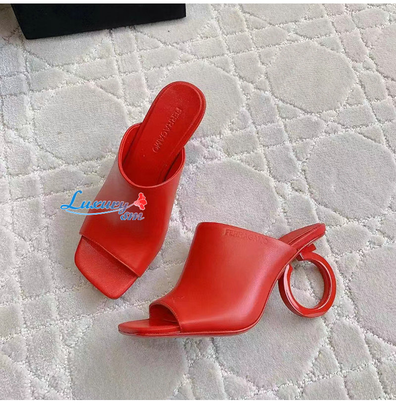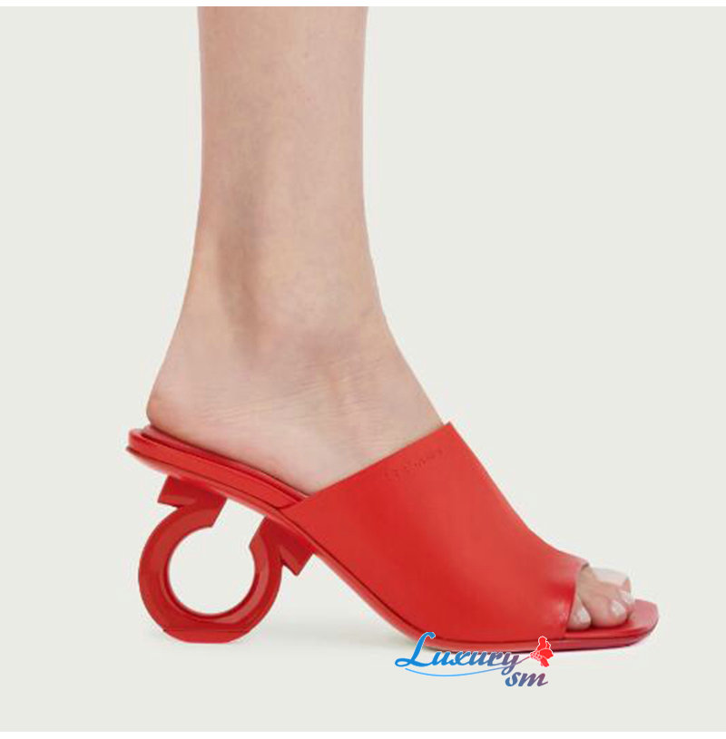 Ferragamo-01F613 페라가모 레드 엘리나 힐 슬라이드