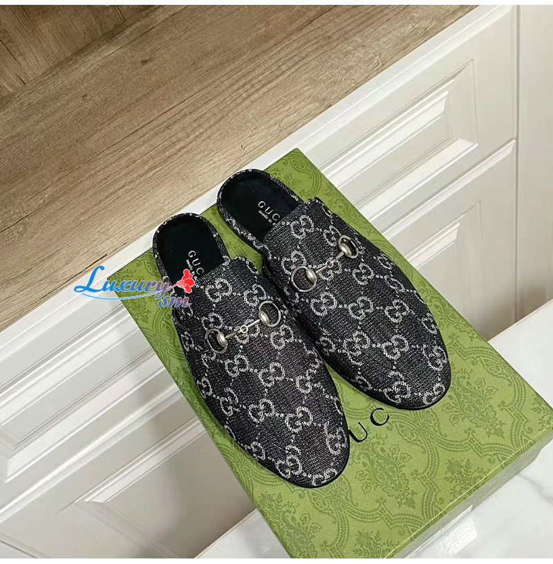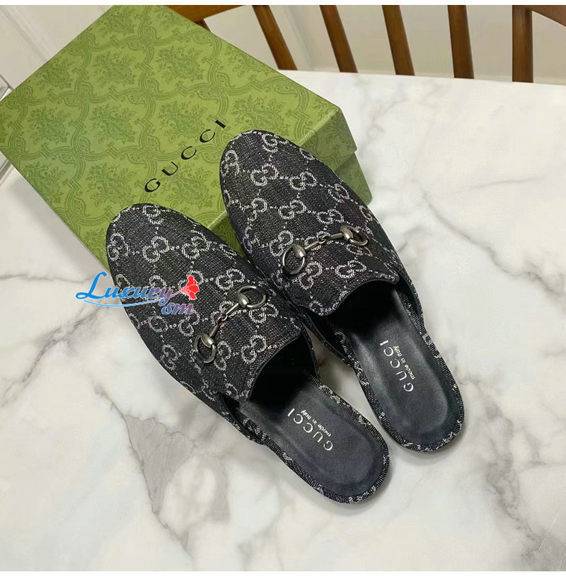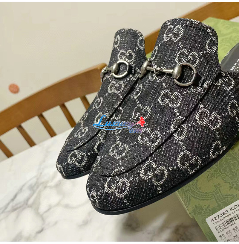 GUCCI-771592 8446 구찌 블랙 프린스타운 GG 슬리퍼 여성용