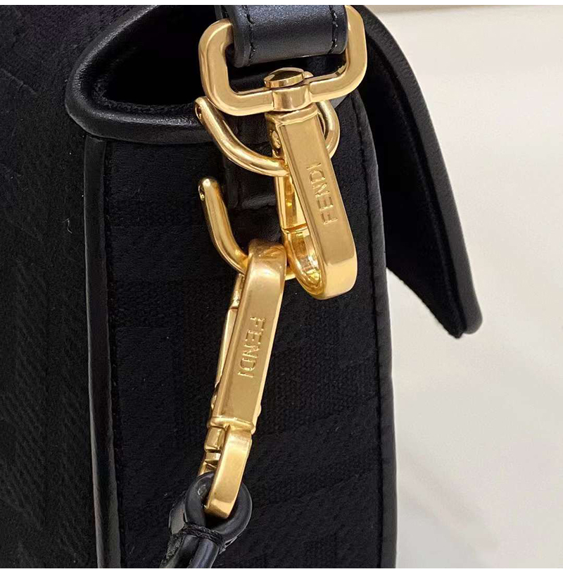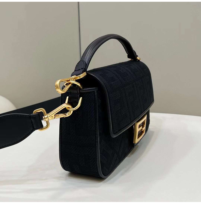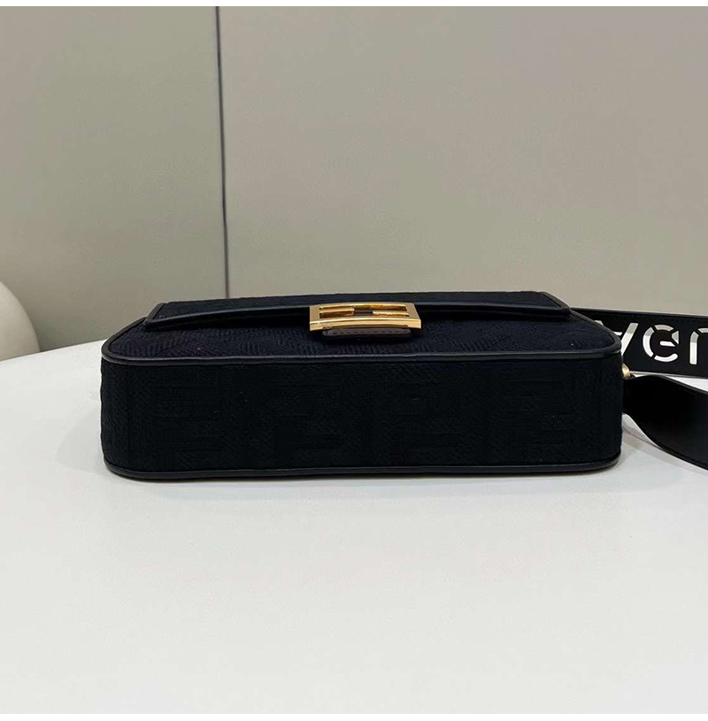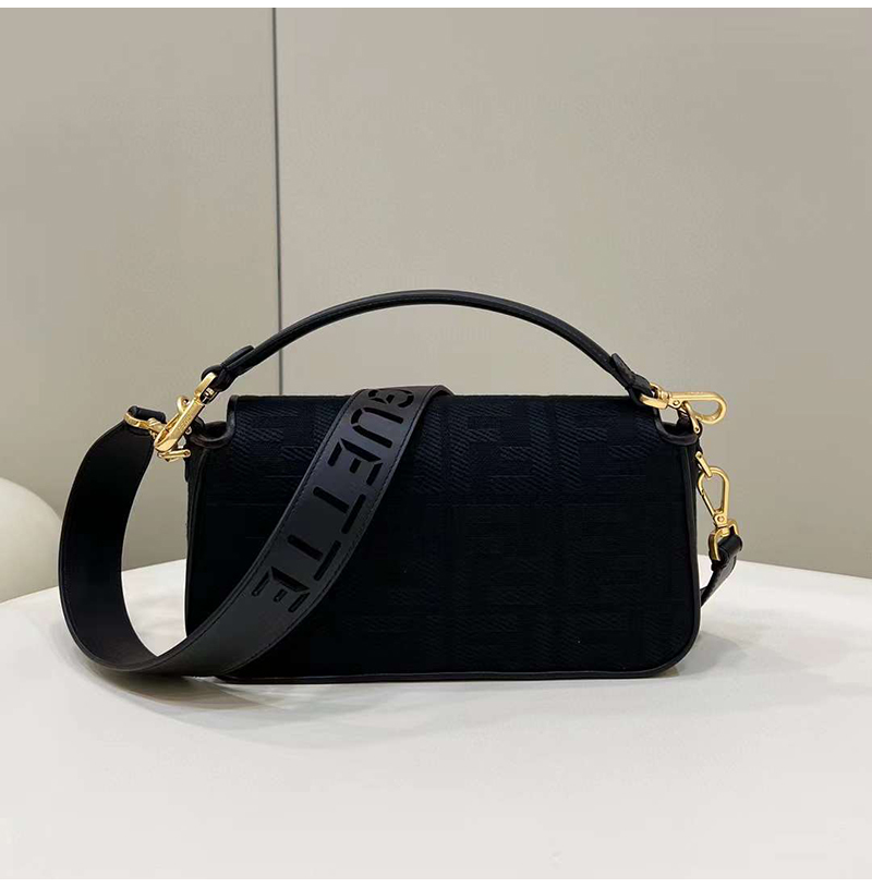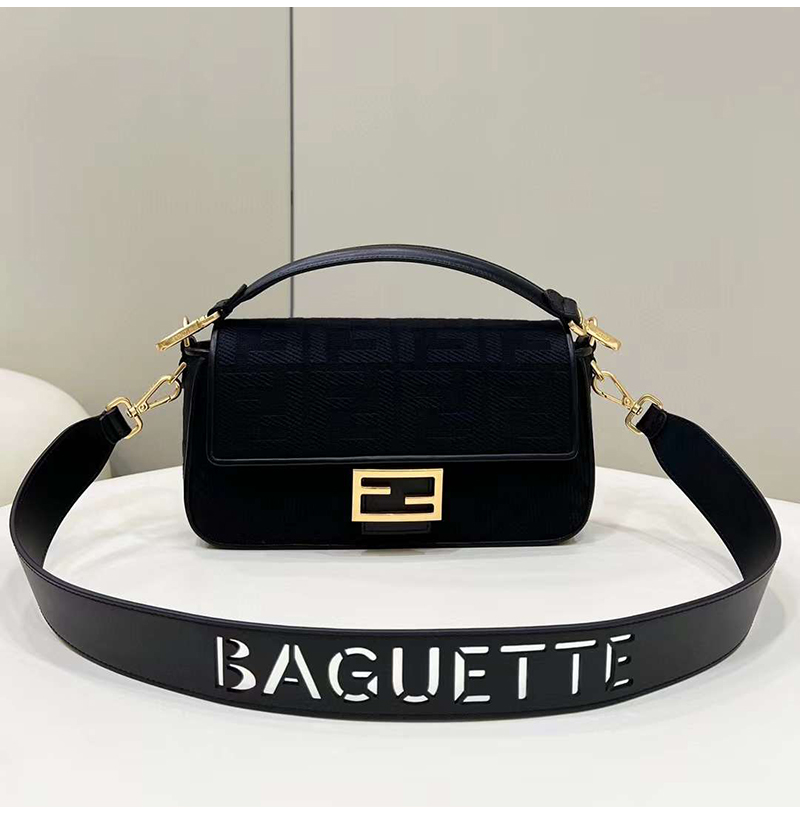 [스페셜오더]FENDI-8BR600 펜디 블랙 FF 캔버스 레이저컷 레터링 스트랩 바게트 백 27CM