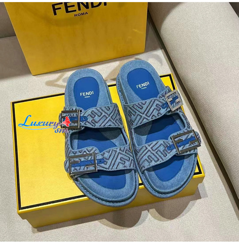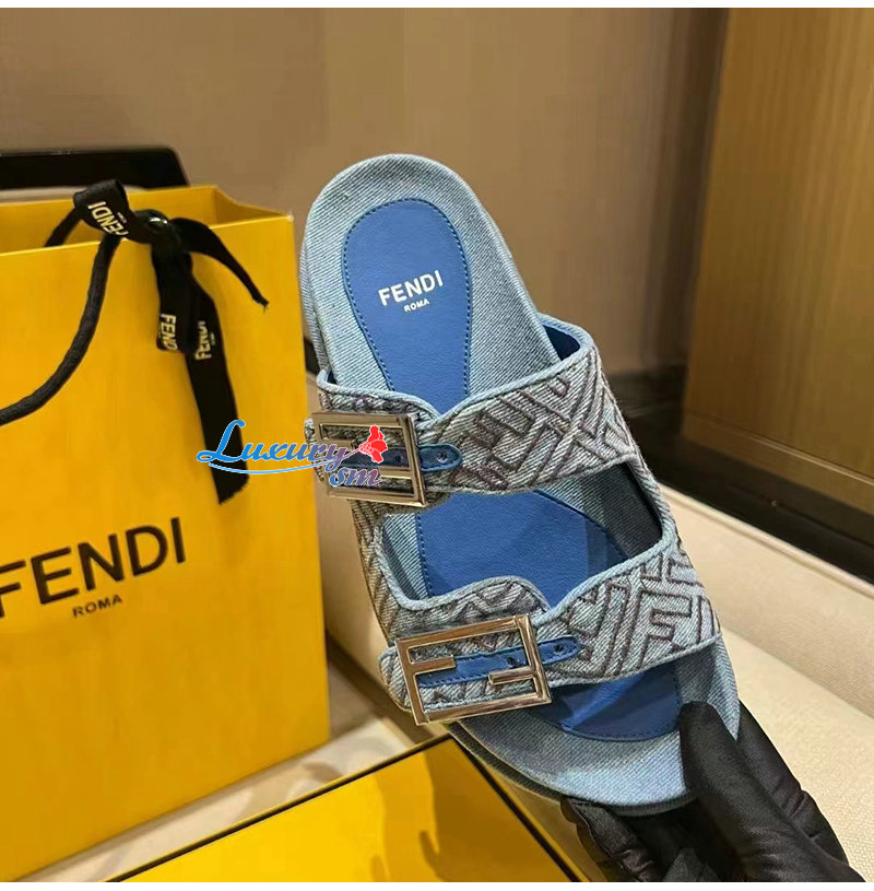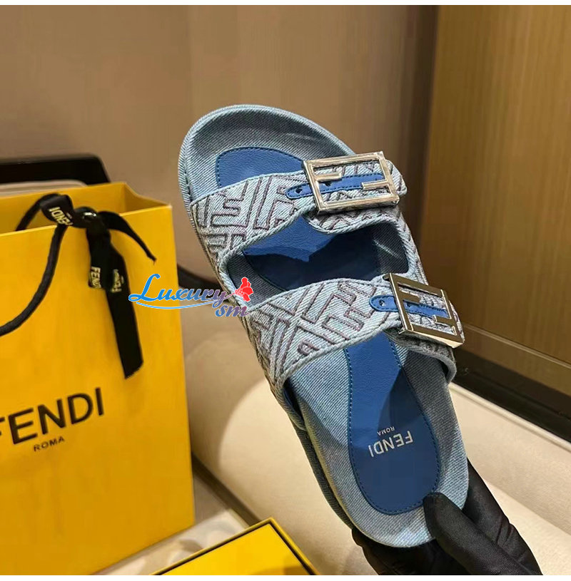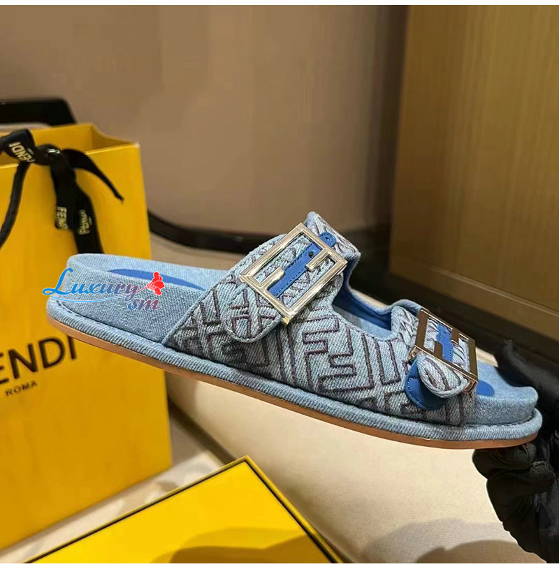 FENDI-8X8326 펜디 블루 데님 펜디 필 슬라이드 여성용