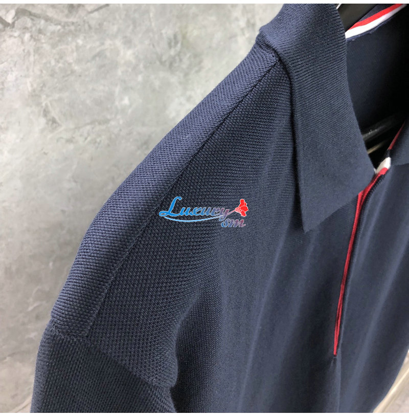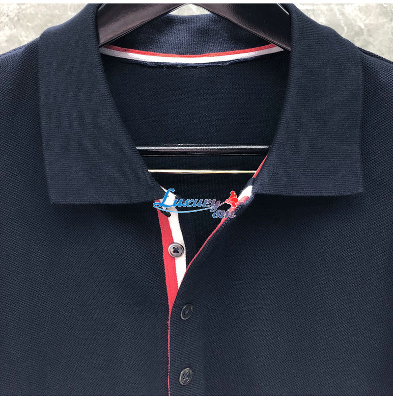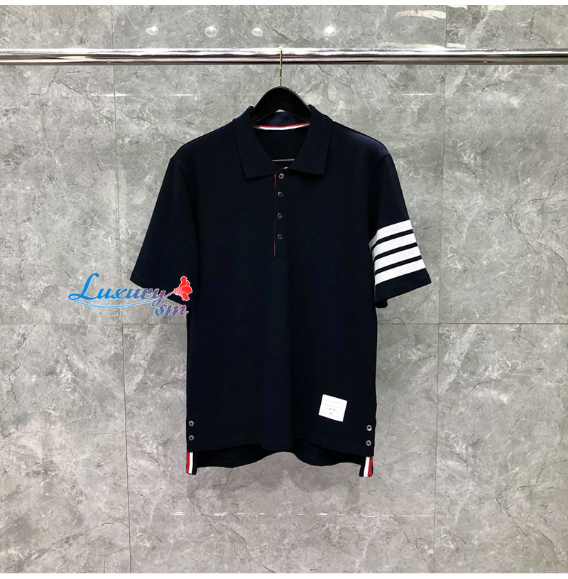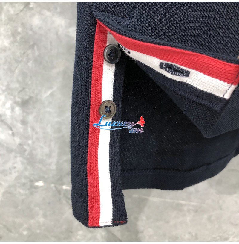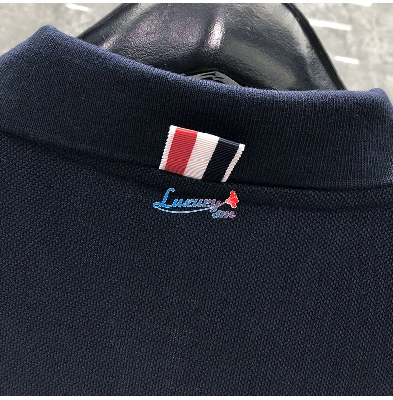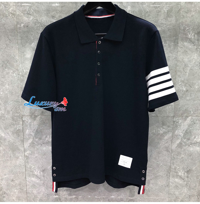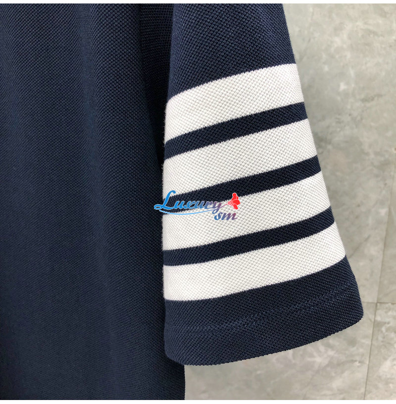 THOM BROWNE-05052 톰 브라운 네이비 스트라이프 장식 폴로 티셔츠 남성용