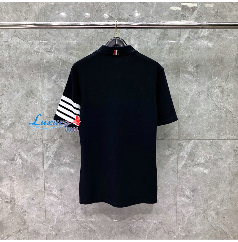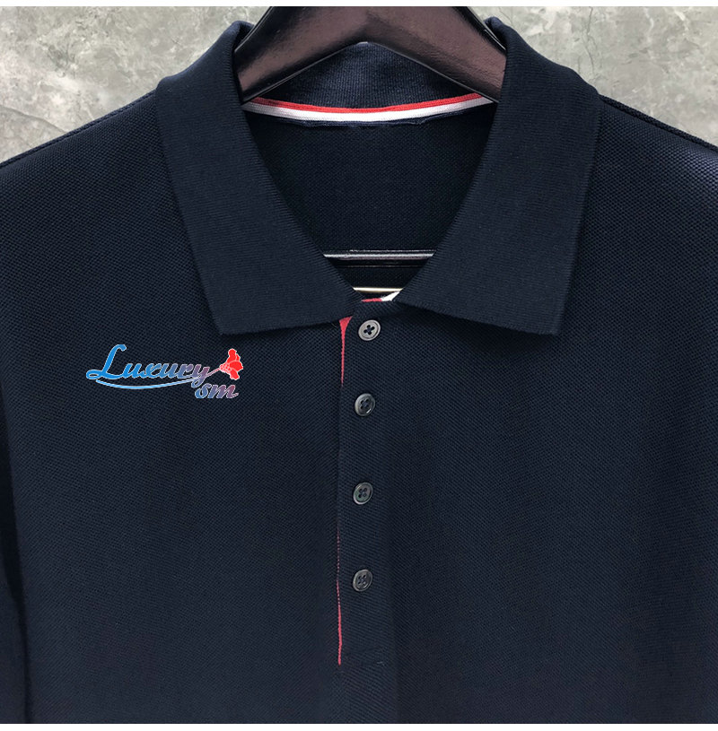 THOM BROWNE-05051 톰 브라운 블랙 스트라이프 장식 폴로 티셔츠 남성용