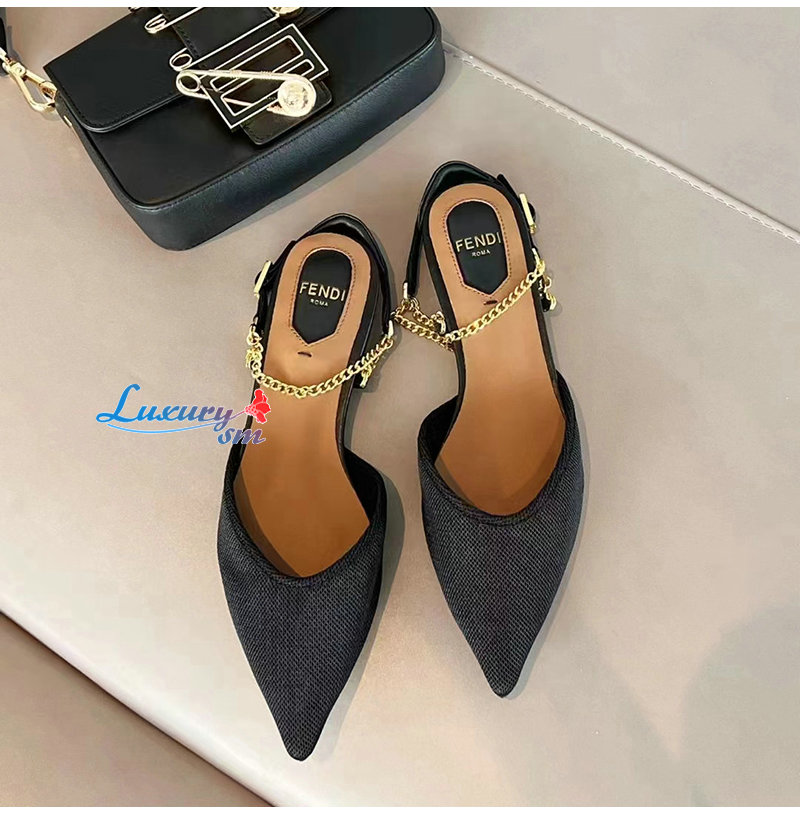 발을 감싸는 체인 스트랩이 달린 심플하고 페미