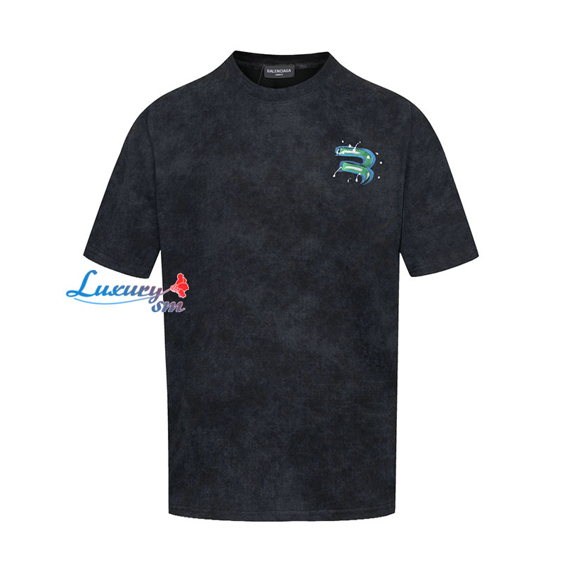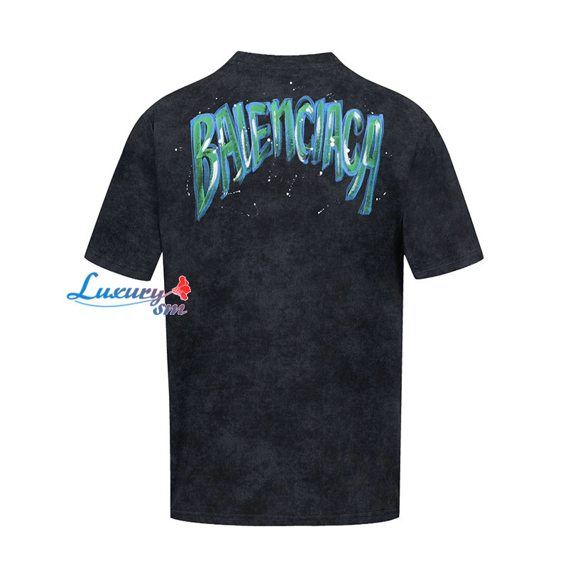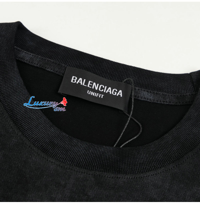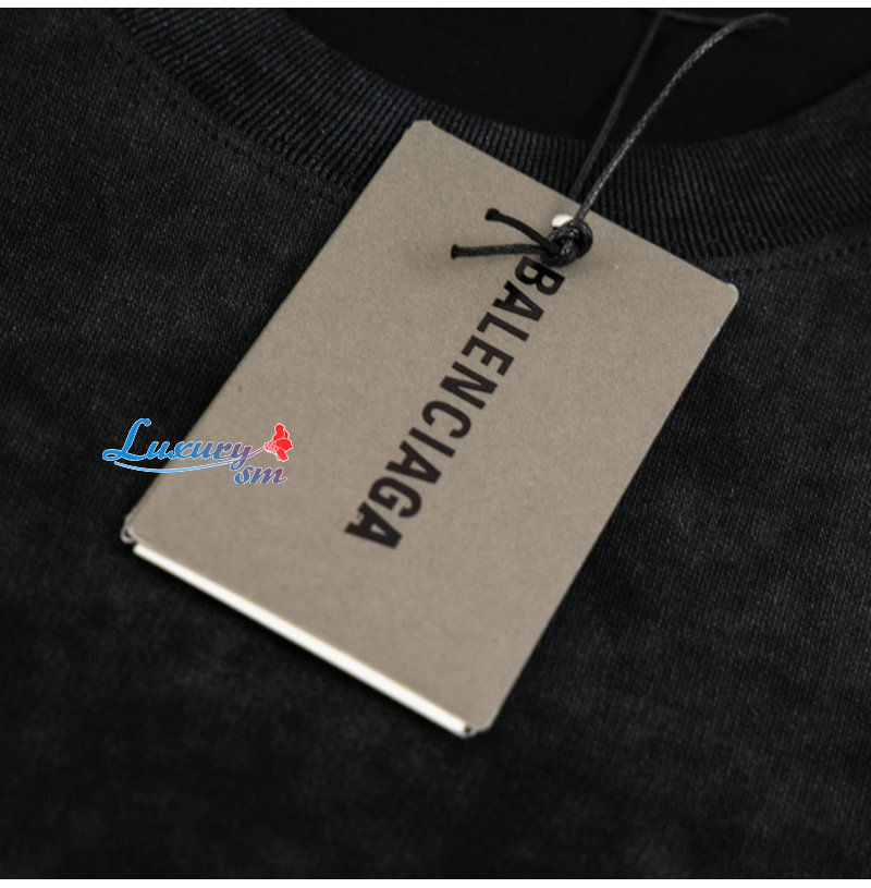 BALENCIAGA-05082 발렌시아가 블랙 프린트 장식 빈티지 티셔츠 남성용