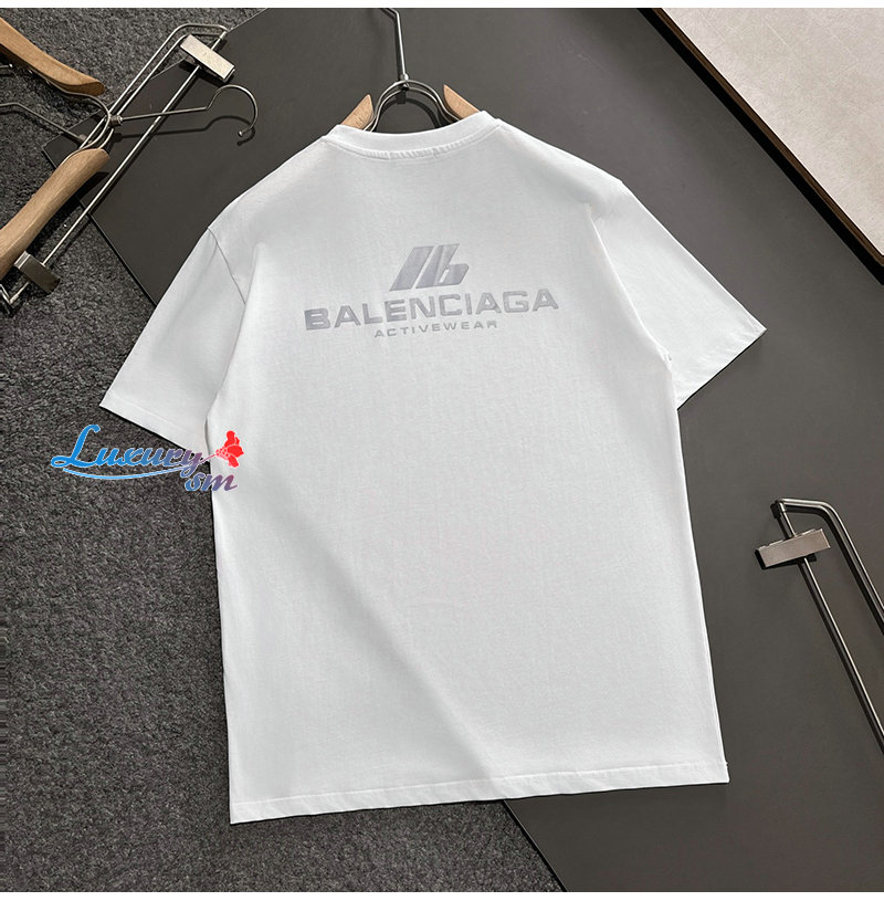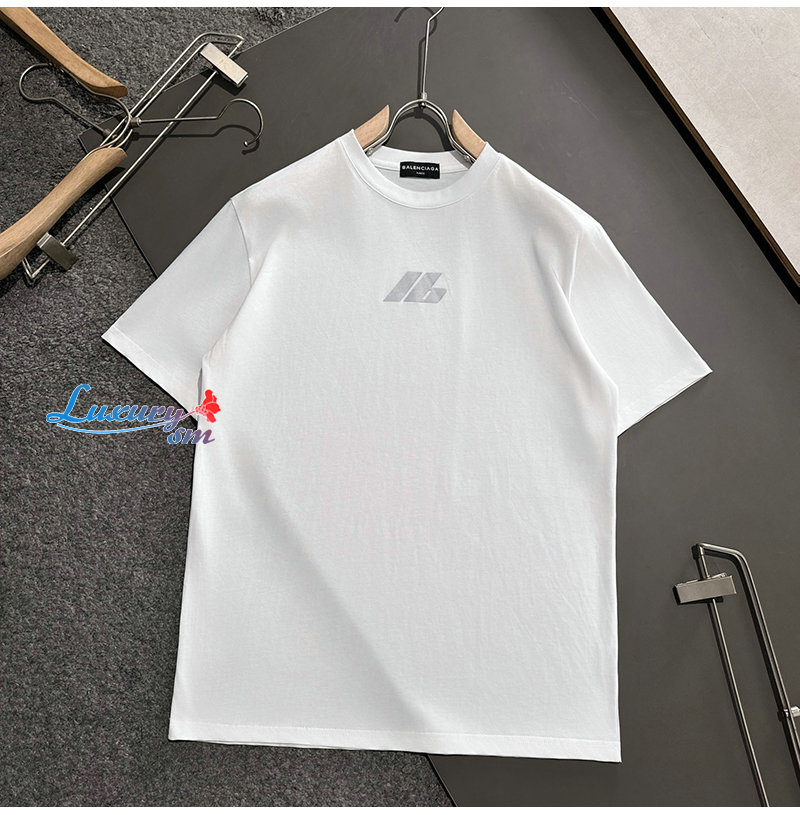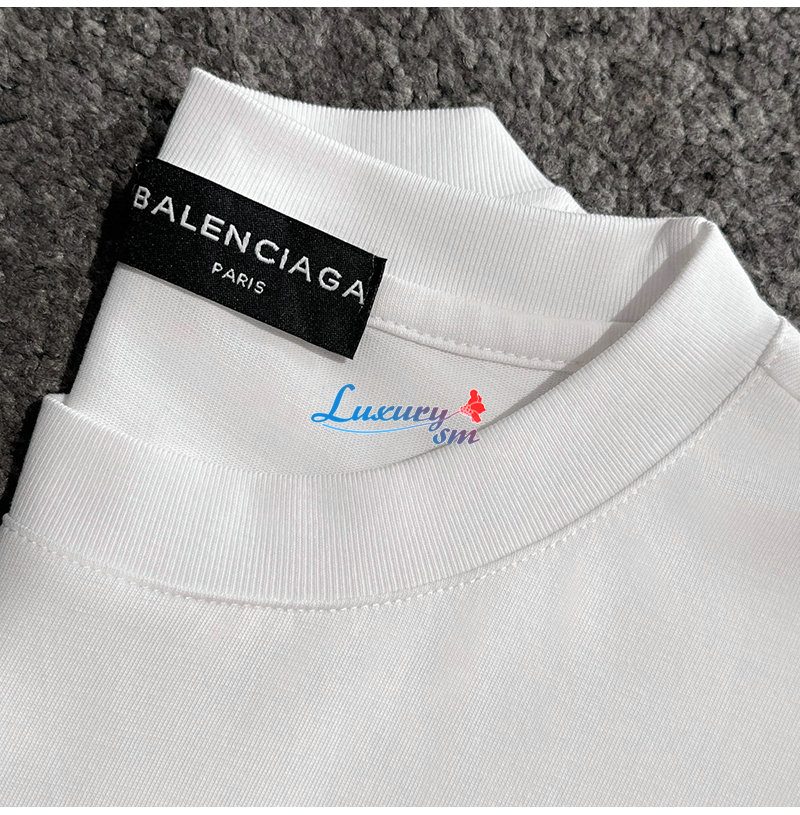 BALENCIAGA-05107 발렌시아가 화이트 프린트 장식 티셔츠 남성용
