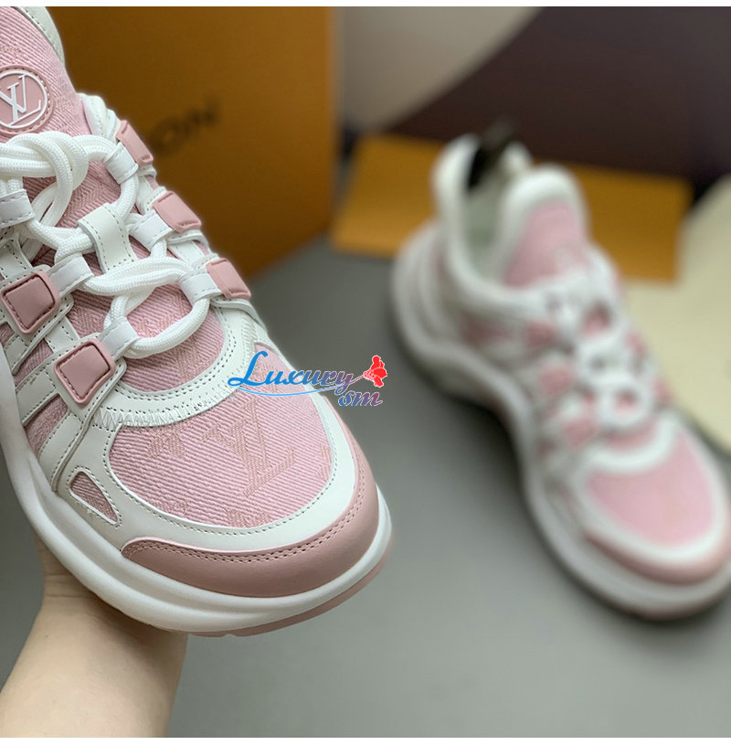 LOUIS VUITTON-1ACL0H 루이비통 핑크 모노그램 데님 LV 아치라이트 스니커즈 여성용