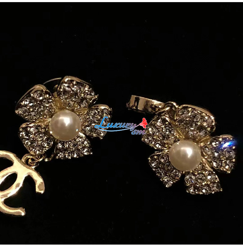 CHANEL-ABA574 샤넬 골드 CC 로고 크리스탈 장식 귀걸이