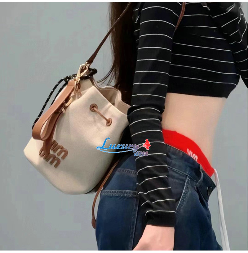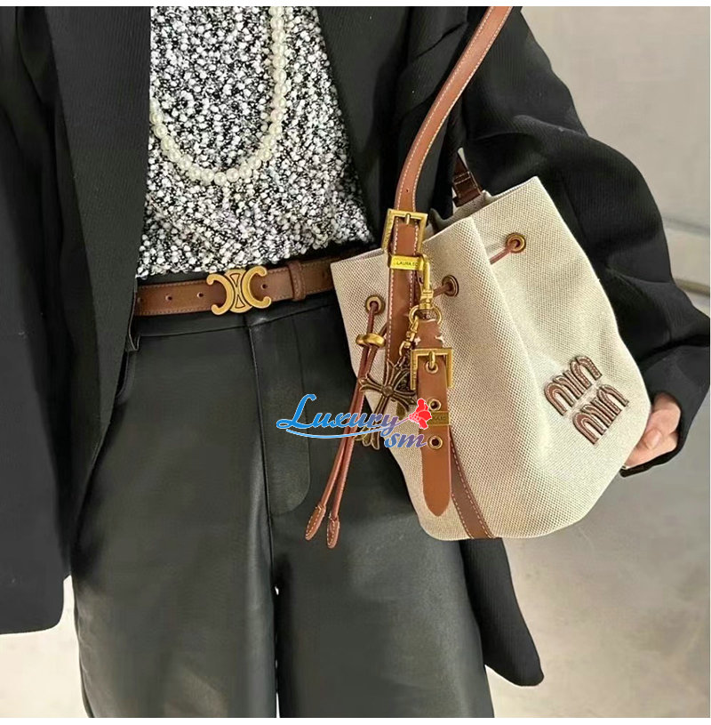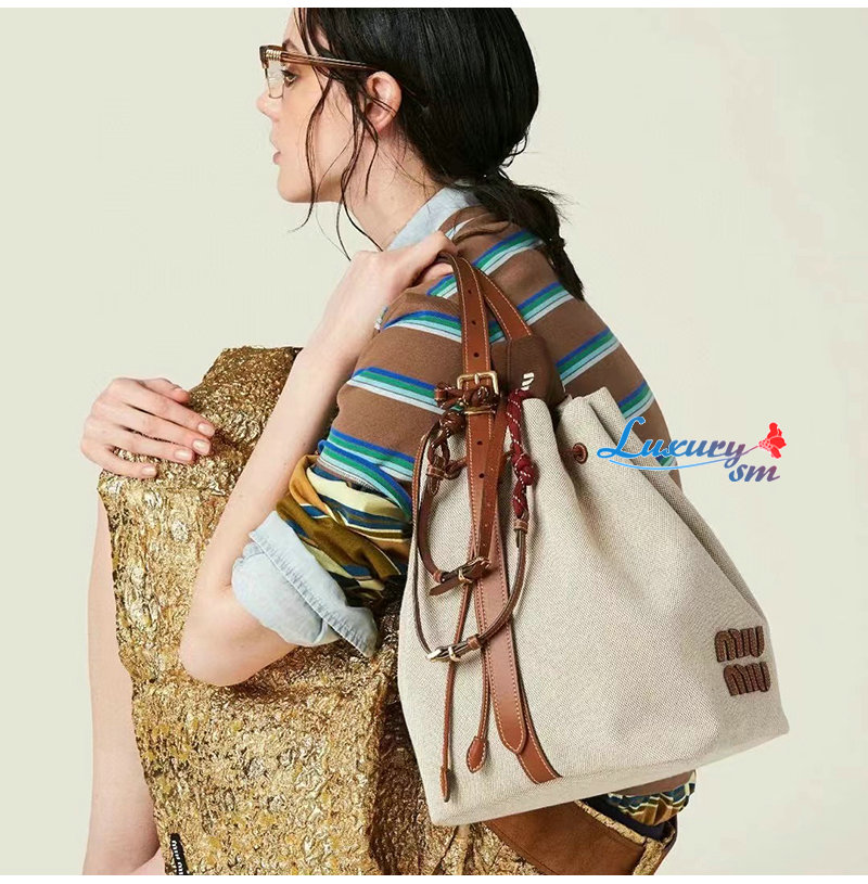 [스페셜오더]MIUMIU-5BE089 미우미우 베이지 캔버스 가죽 버킷 백