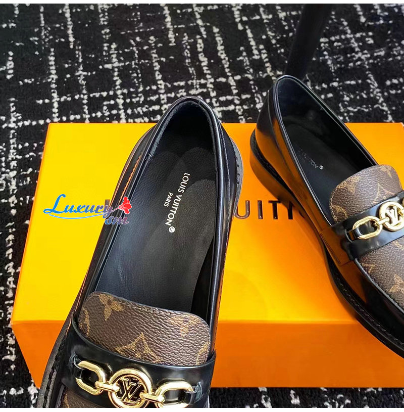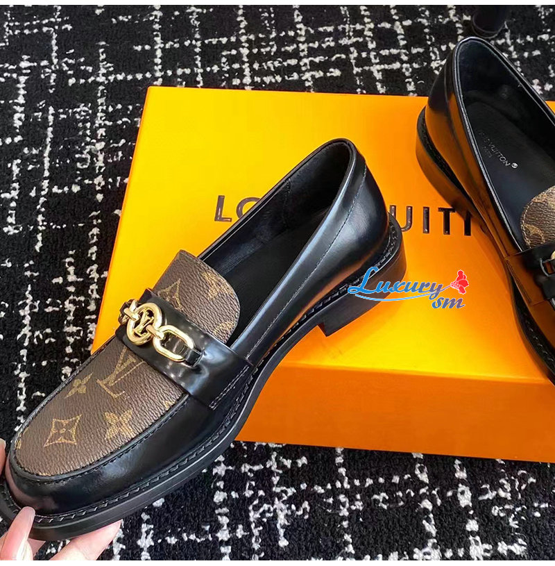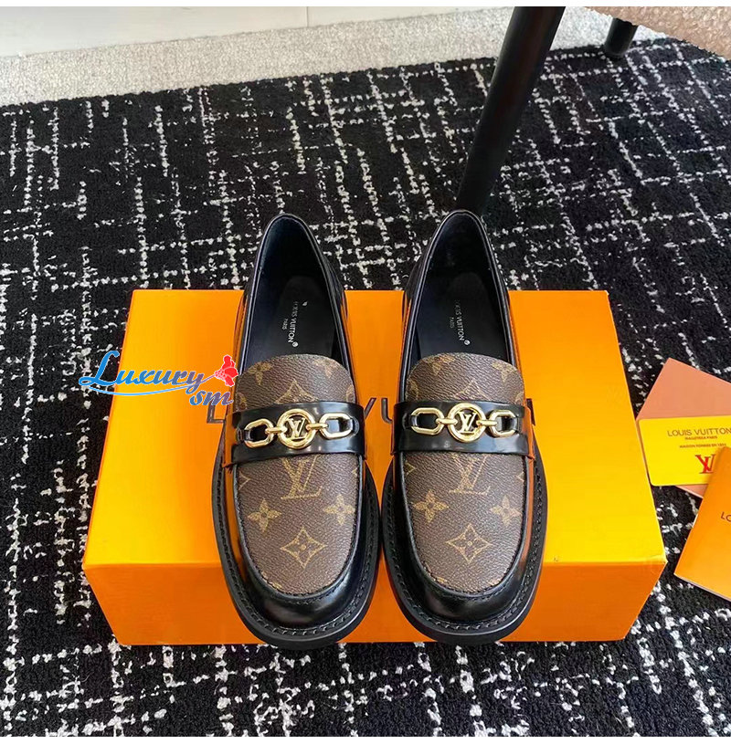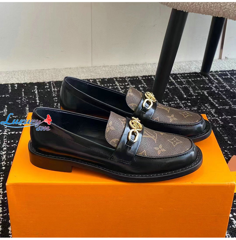 LOUIS VUITTON-1ABIAU 루이비통 블랙 체스 플랫 로퍼 여성용