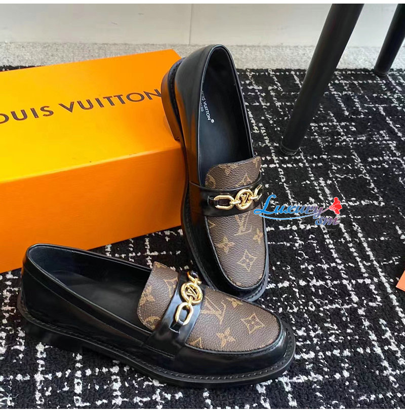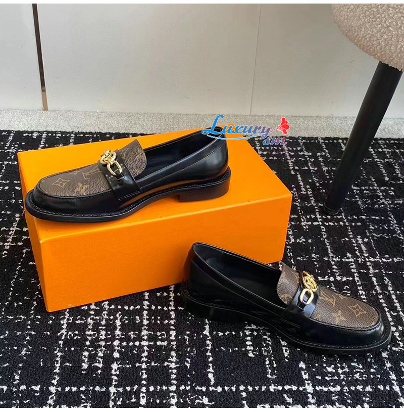 LOUIS VUITTON-1ABPKY 루이비통 블랙 모노그램 체스 플랫 로퍼 여성용