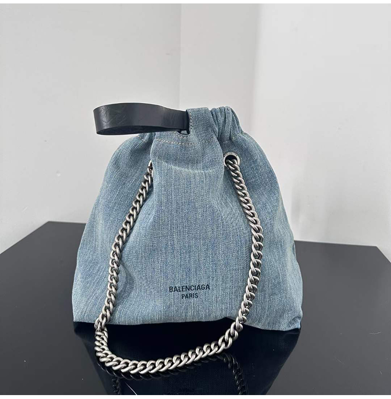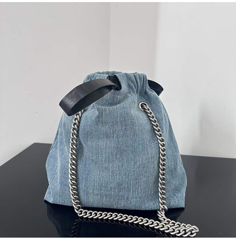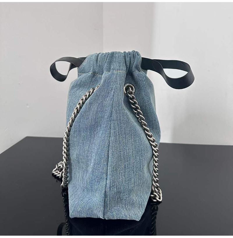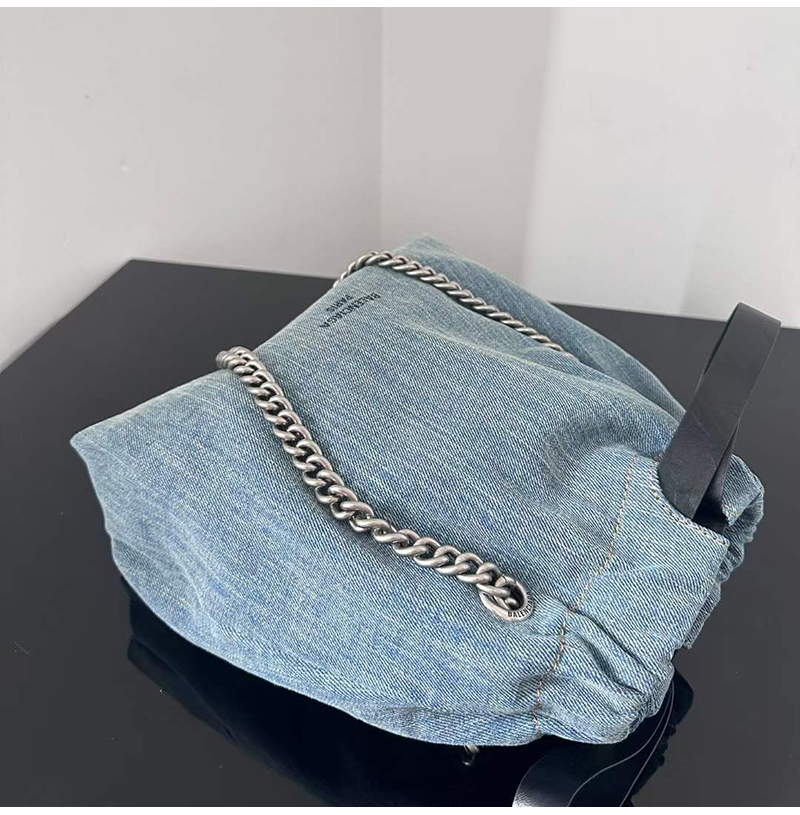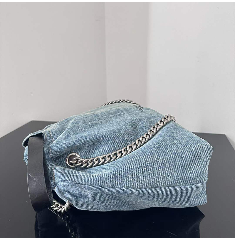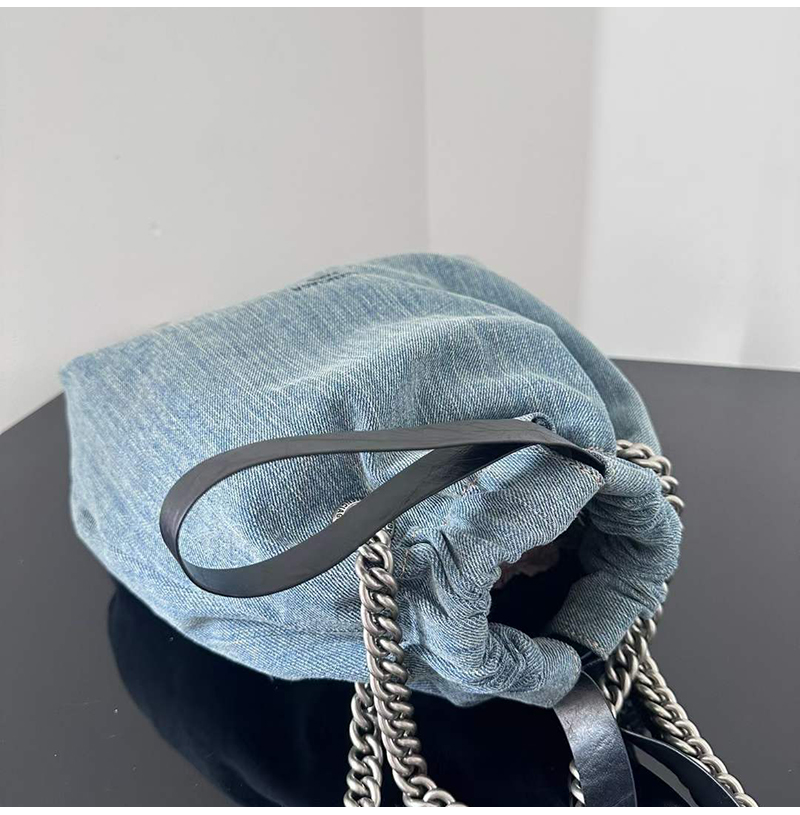 블루 워시드 데님 소재의 크러쉬 스몰 토트백