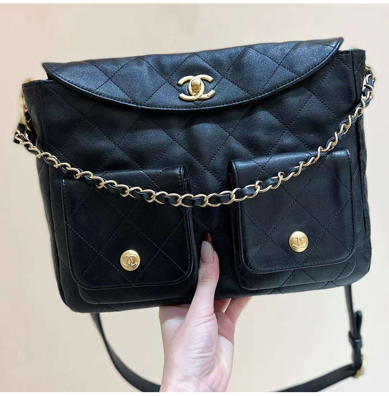 [스페셜오더]CHANEL-AS4743 샤넬 블랙 카프스킨 스몰 호보 백 24cm