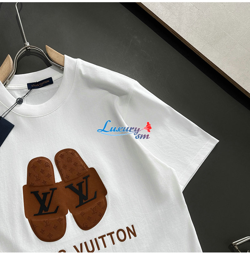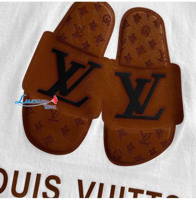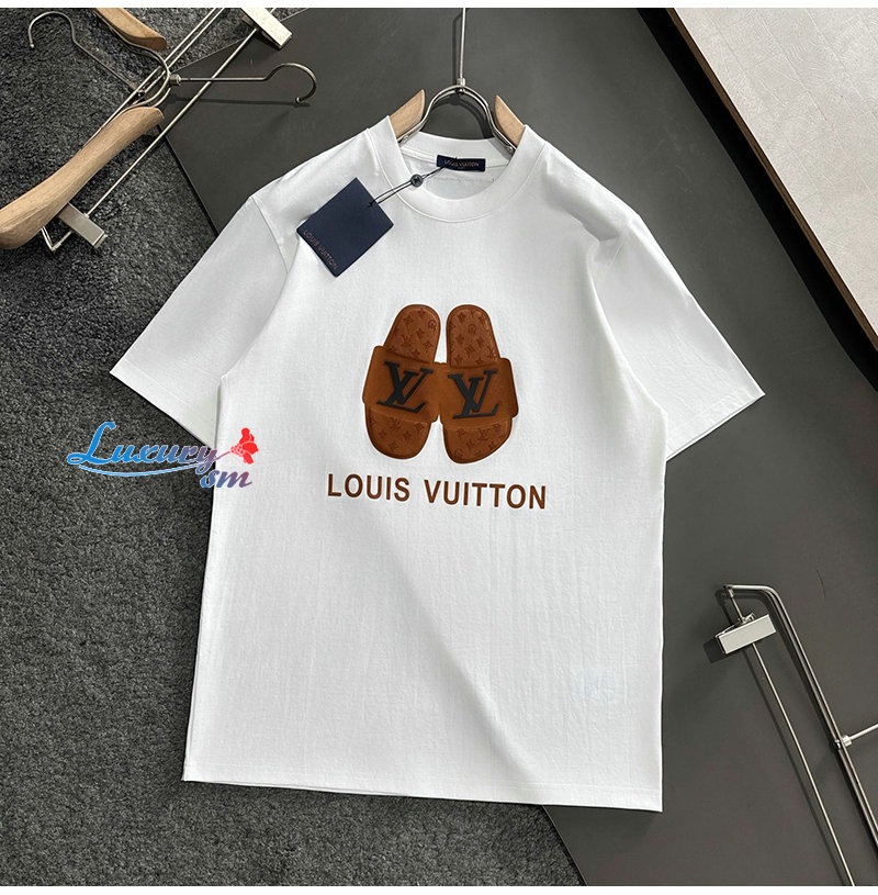 LOUIS VUITTON-05215 루이비통 화이트 슬리퍼 아플리케 장식 티셔츠 남성용