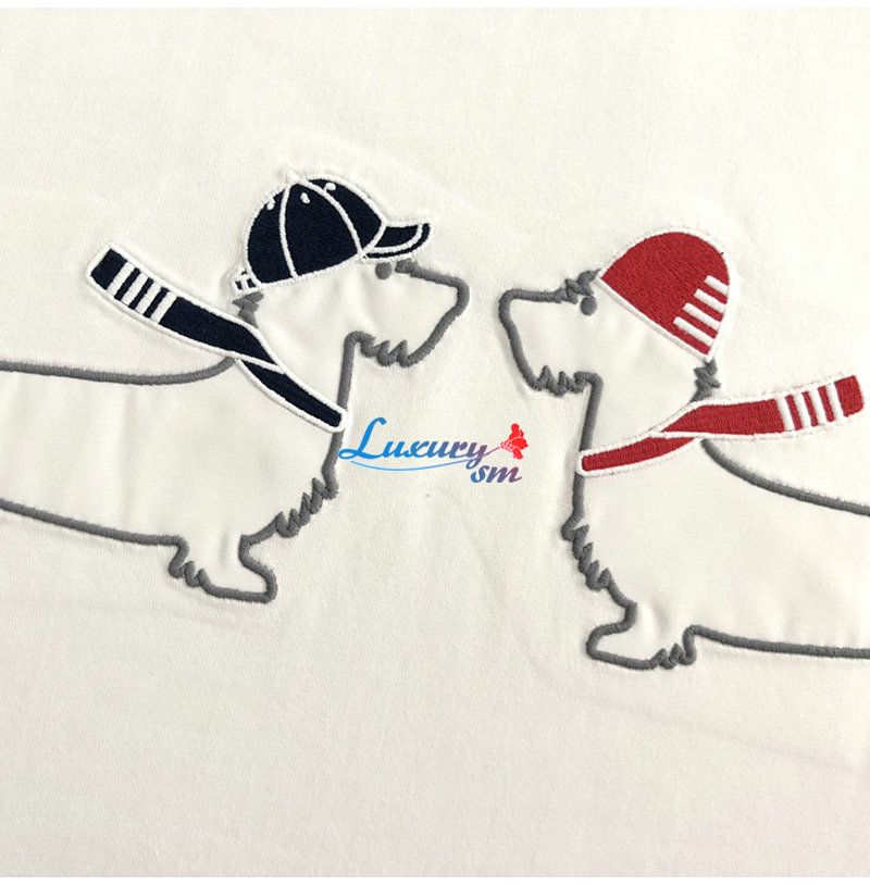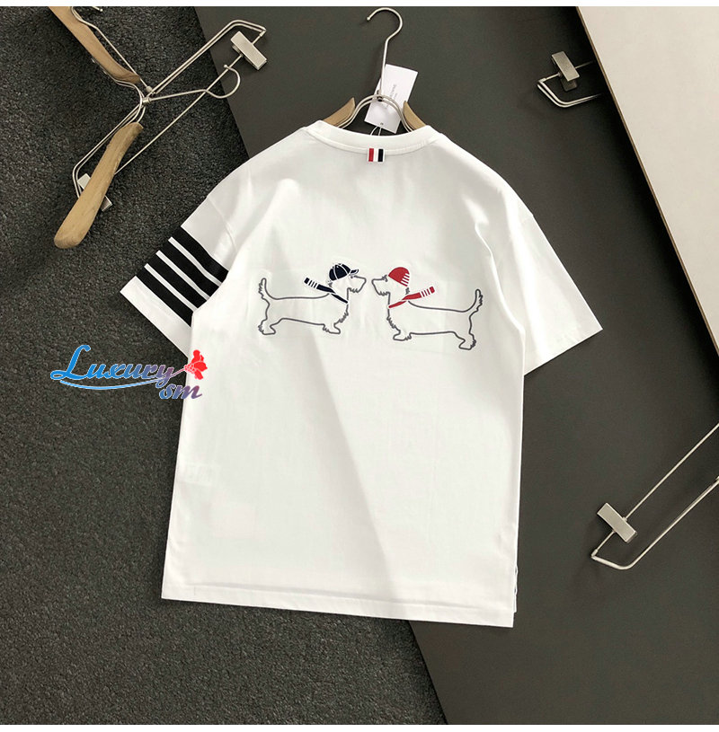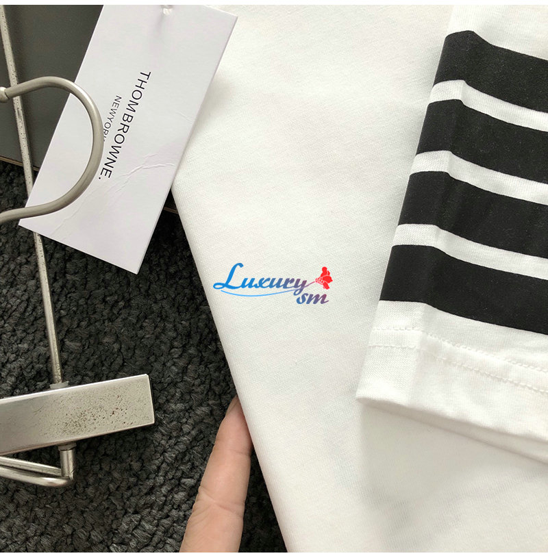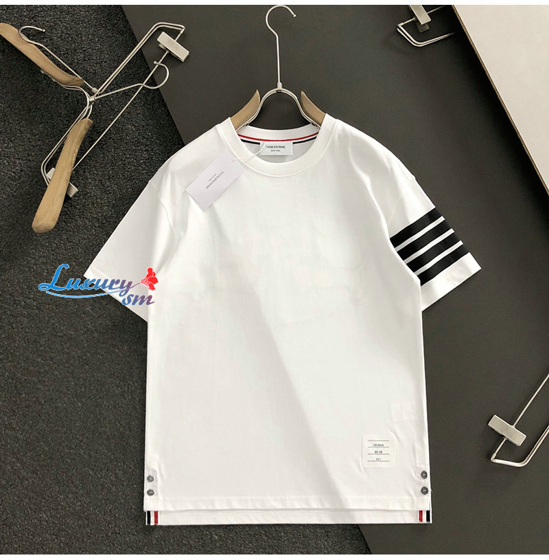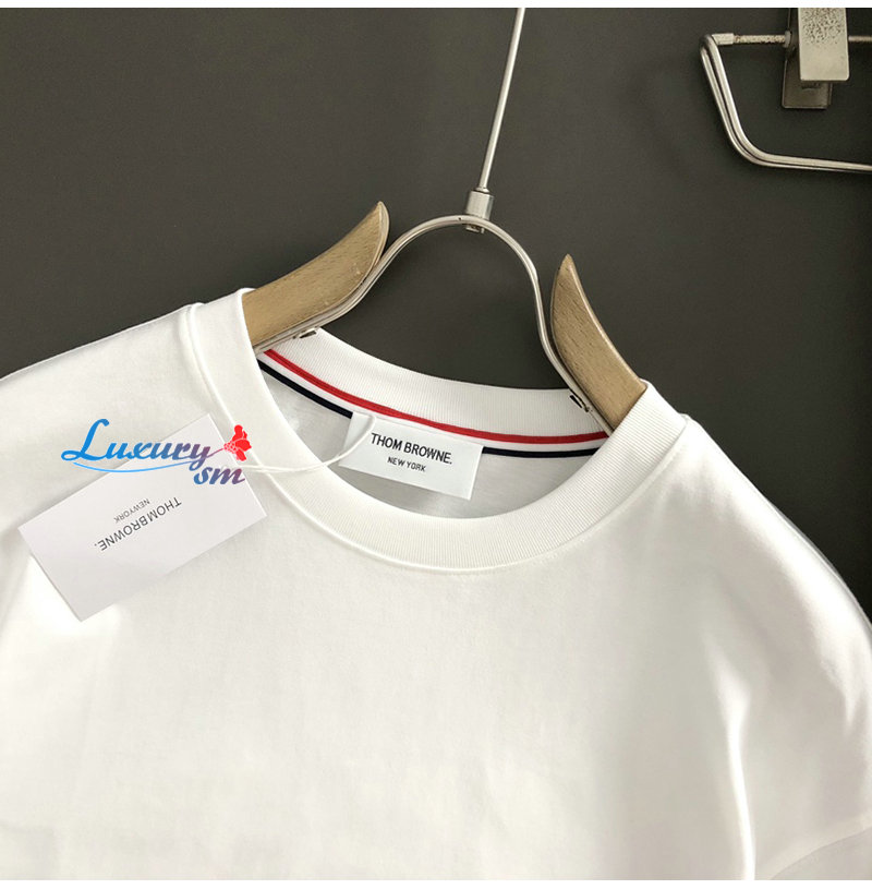 THOM BROWNE-05218 톰 브라운 화이트 스트라이프 장식 티셔츠 남성용