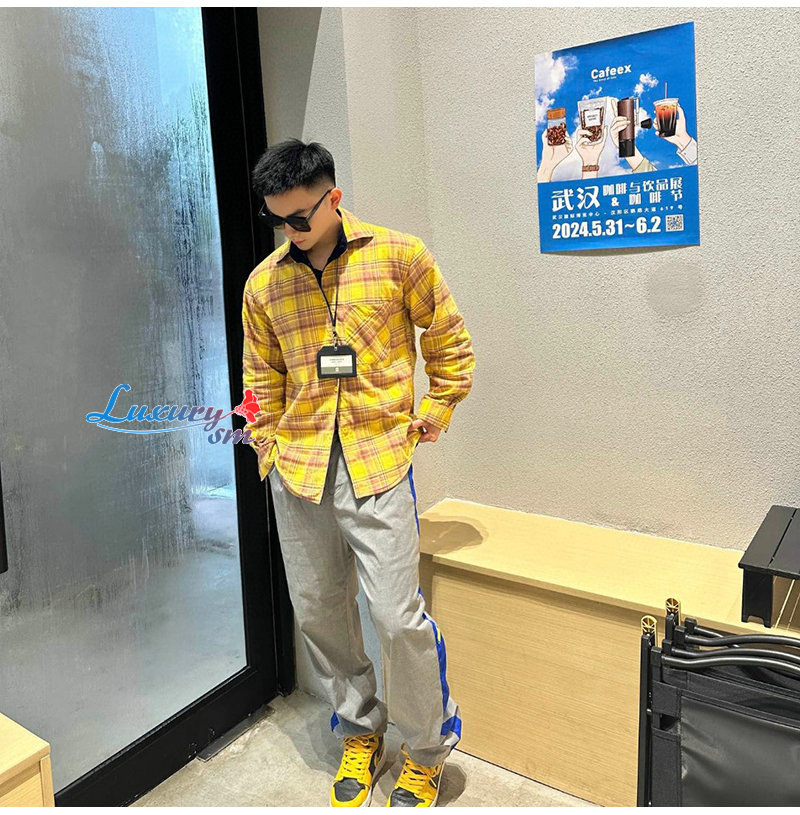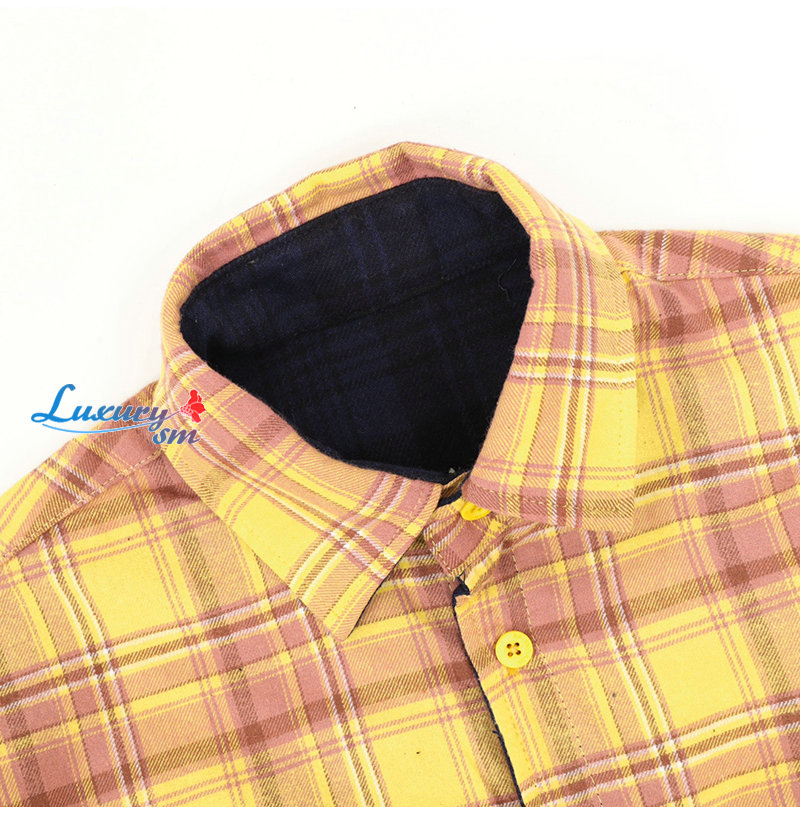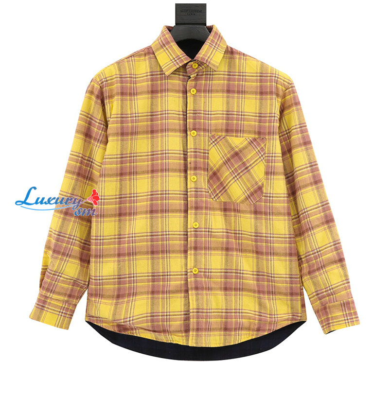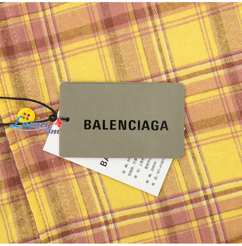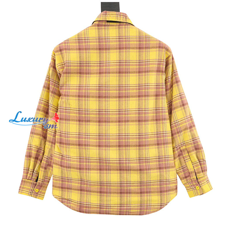 BALENCIAGA-05221 발렌시아가 옐로우/네이비 체크 무늬 양면 셔츠 남여공용