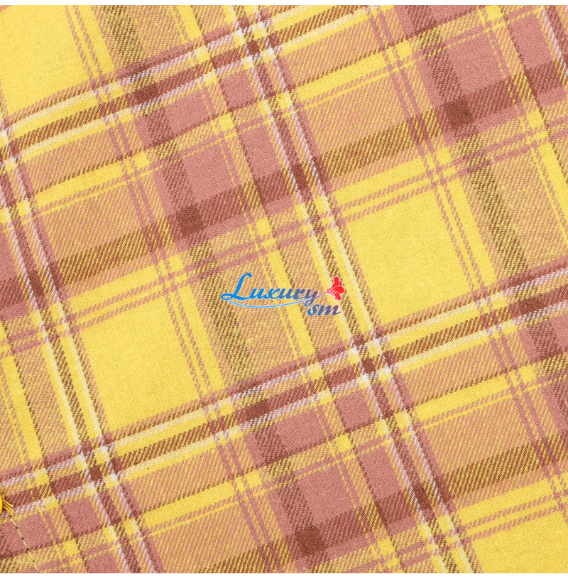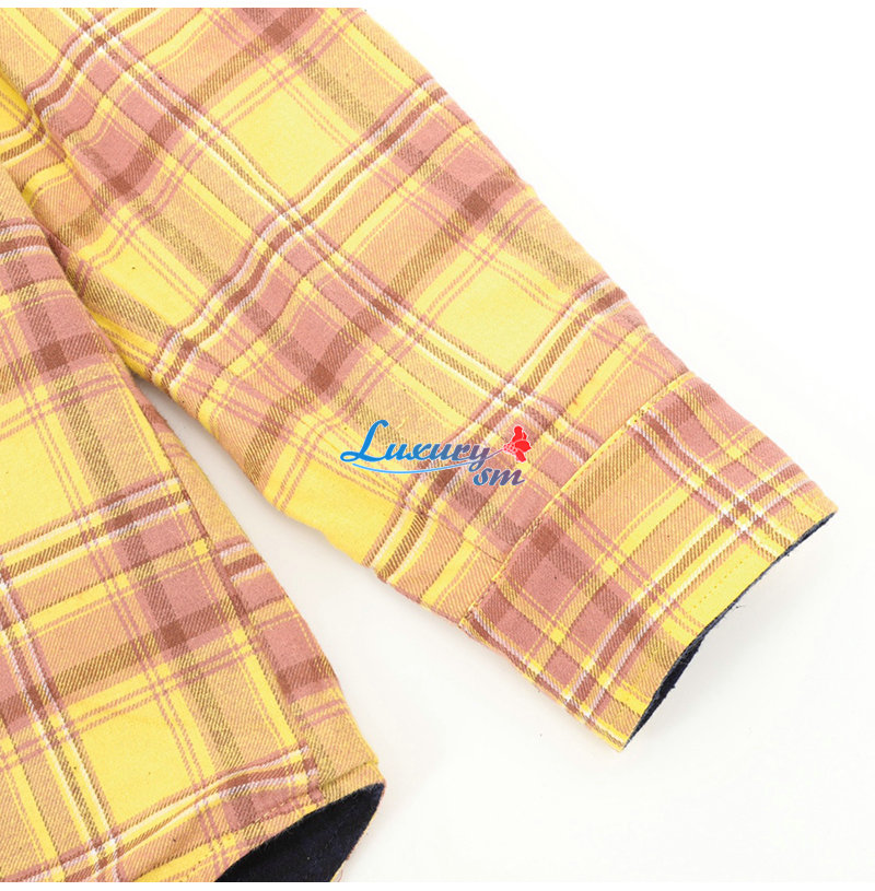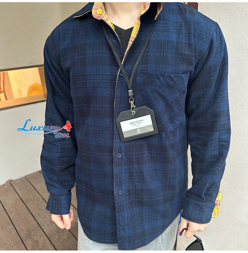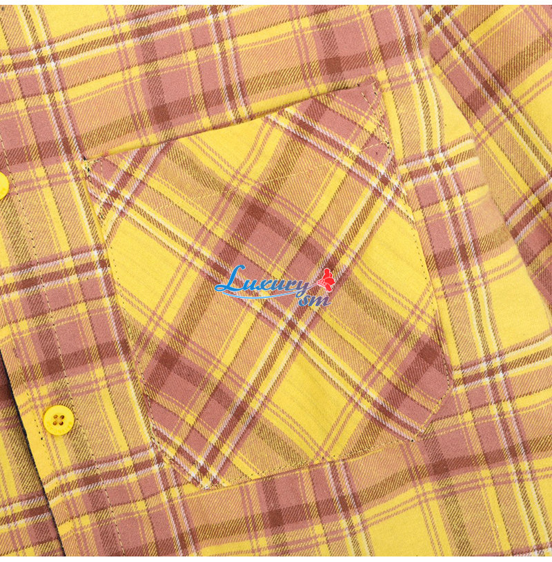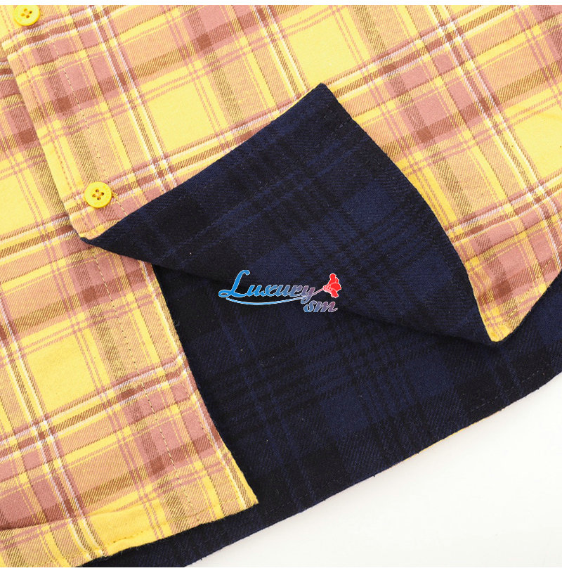 BALENCIAGA-05221 발렌시아가 옐로우/네이비 체크 무늬 양면 셔츠 남여공용