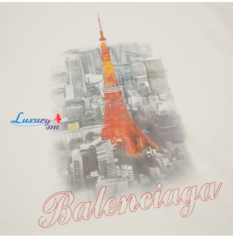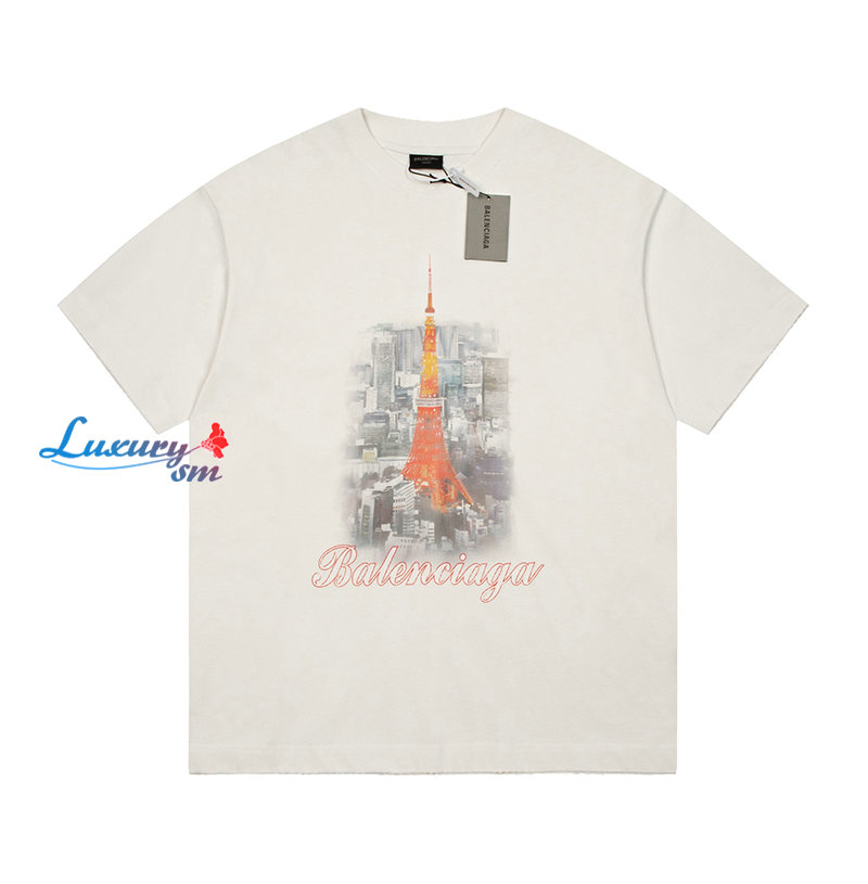 BALENCIAGA-05221 발렌시아가 화이트 프린트 장식 티셔츠 남여공용