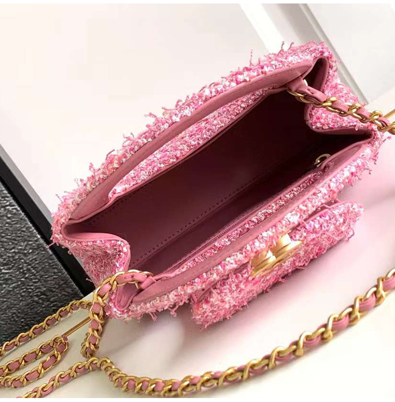 [스페셜오더]CHANEL-AS4416 샤넬 핑크/에크루 코튼 트위드 Kelly/켈리 미니 쇼핑백 19cm