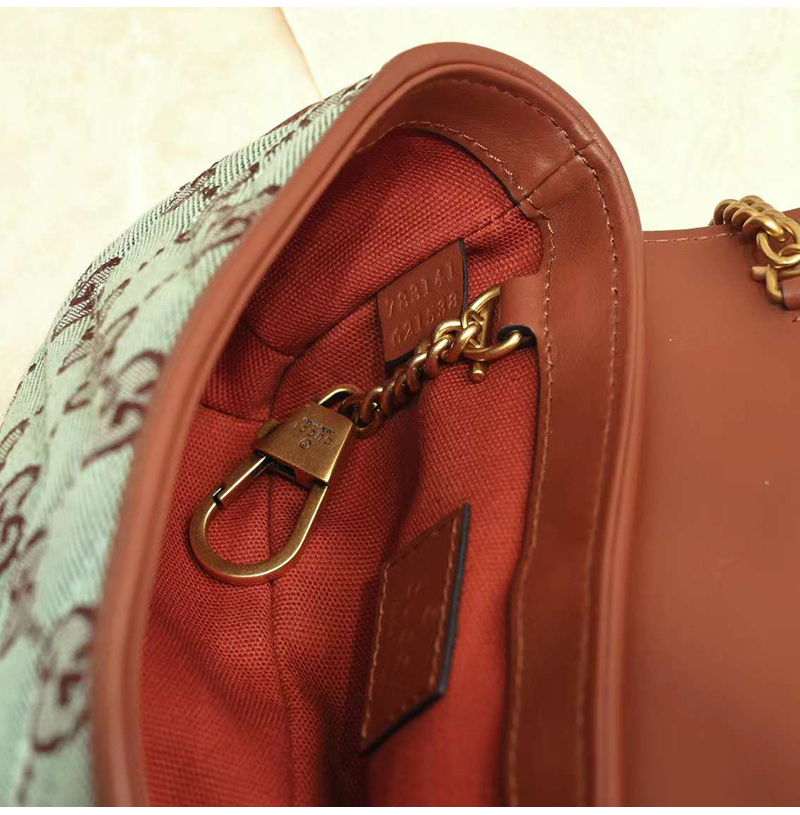 페일 블루&브라운 GG 캔버스 / 브라운 가죽 트리밍
