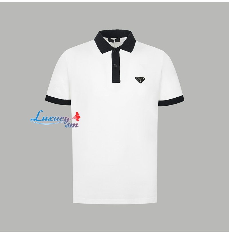 PRADA-06019 프라다 화이트 트라이앵글 로고 폴로 티셔츠 남성용