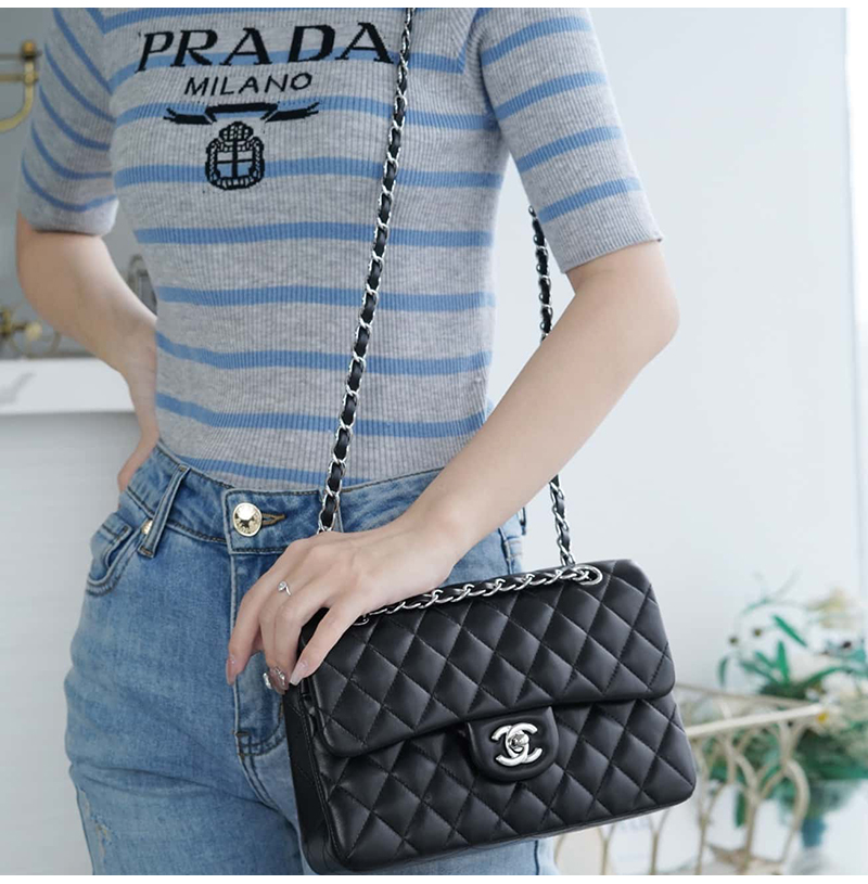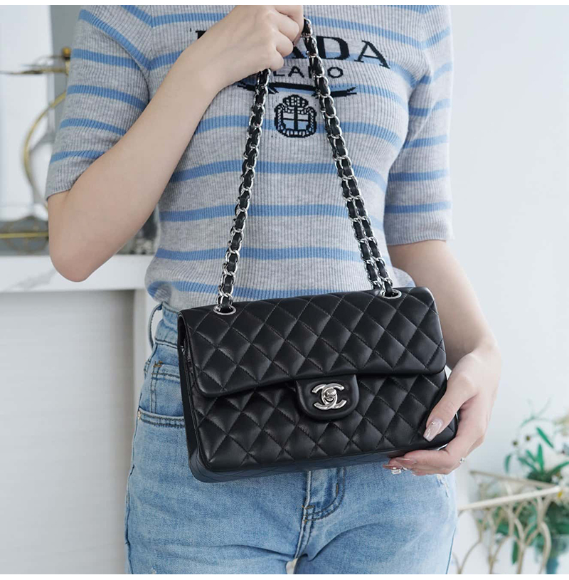 [스페셜오더]CHANEL-A01113 샤넬 블랙 램스킨 클래식 스몰 플랩 백 23cm Silver-Tone Metal