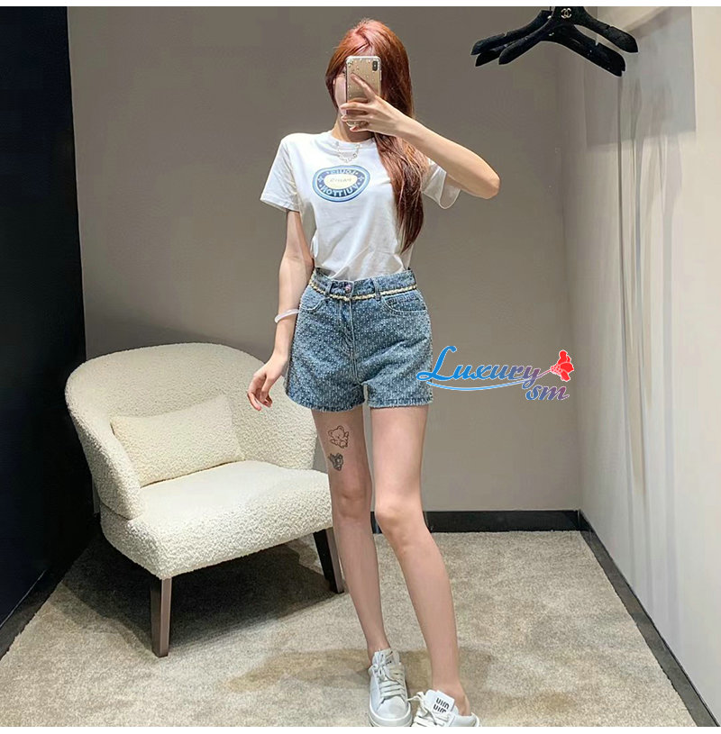 CHANEL-06128 샤넬 화이트 체인 장식 데님 쇼츠 여성용