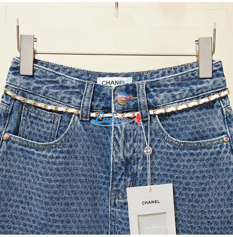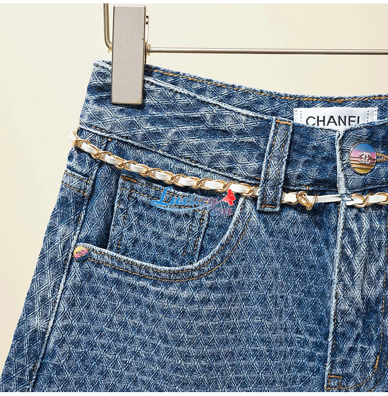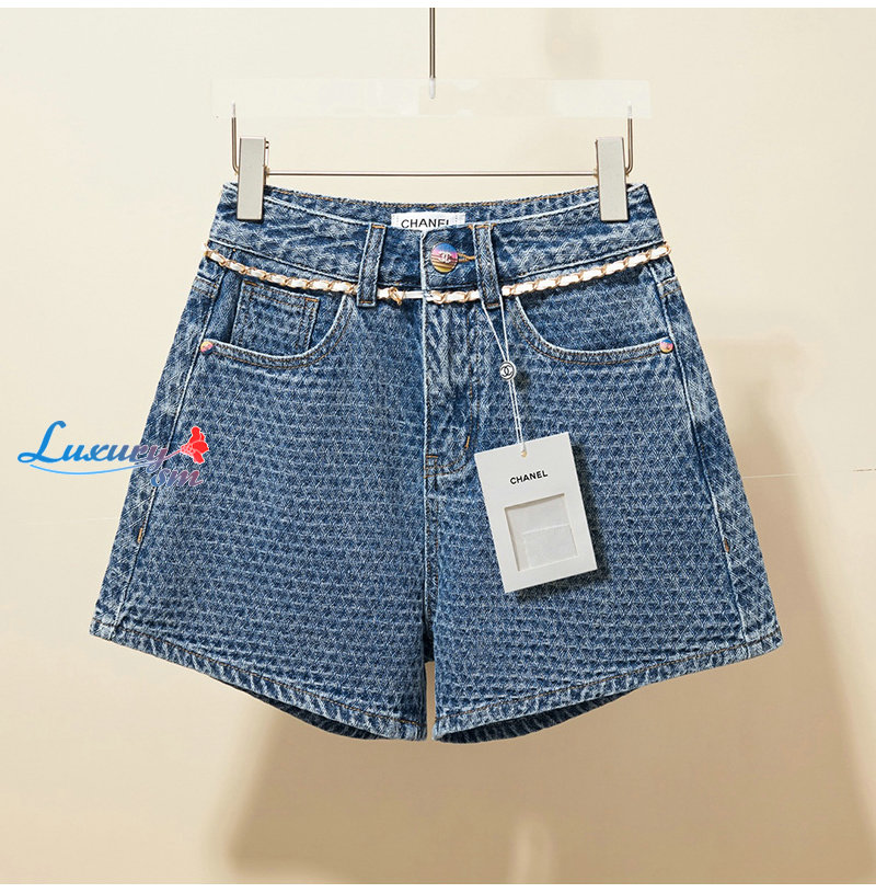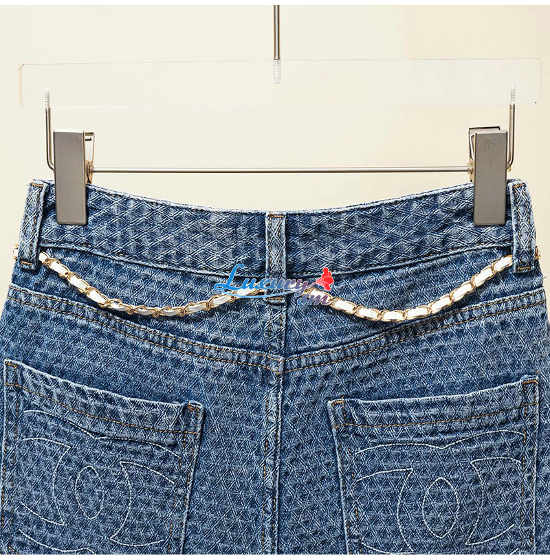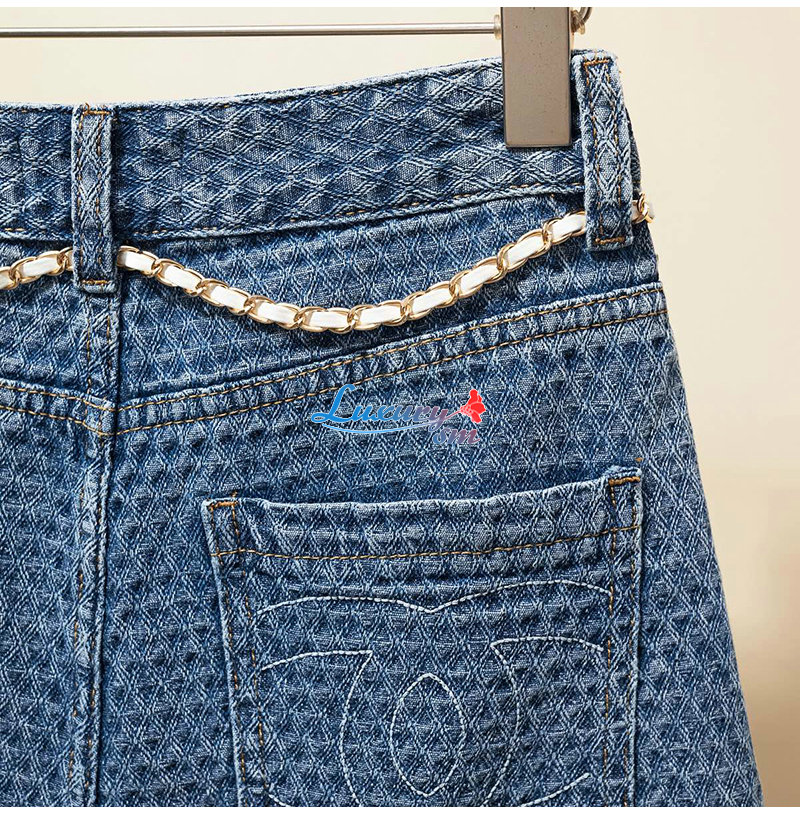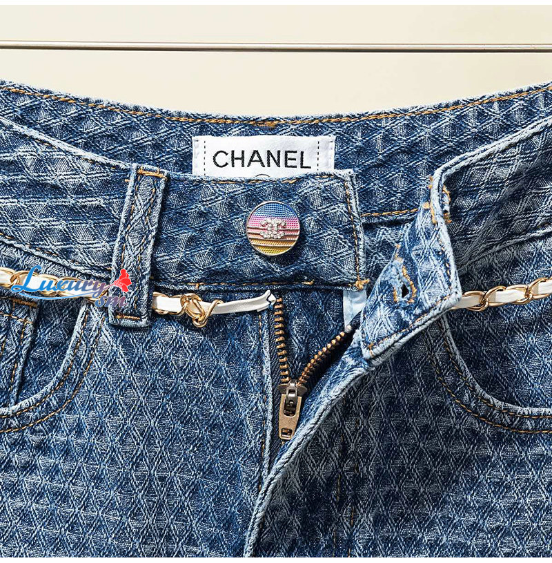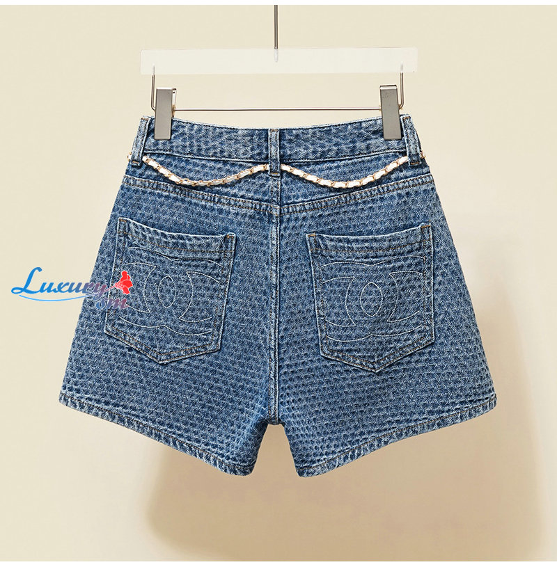 CHANEL-06127 샤넬 블루 체인 장식 데님 쇼츠