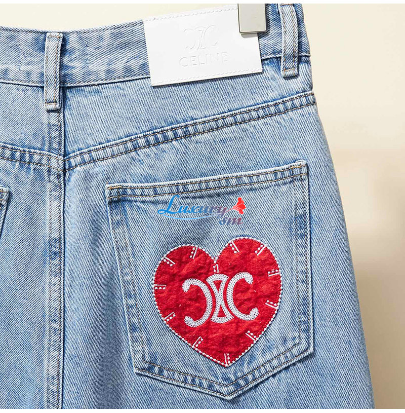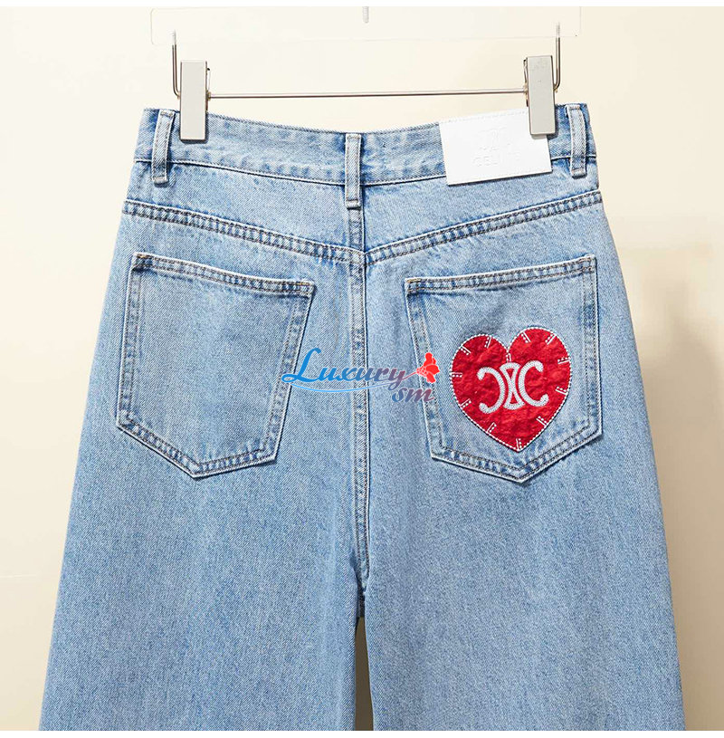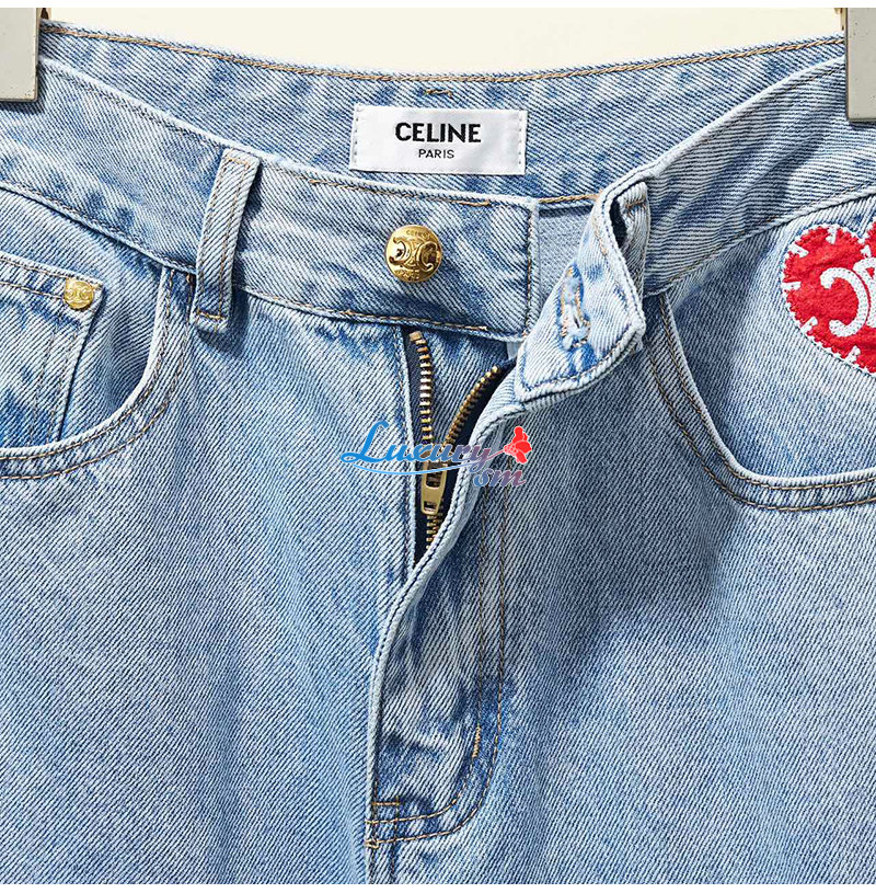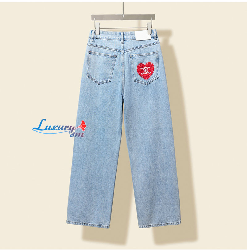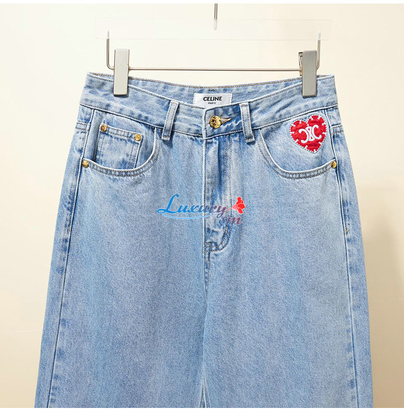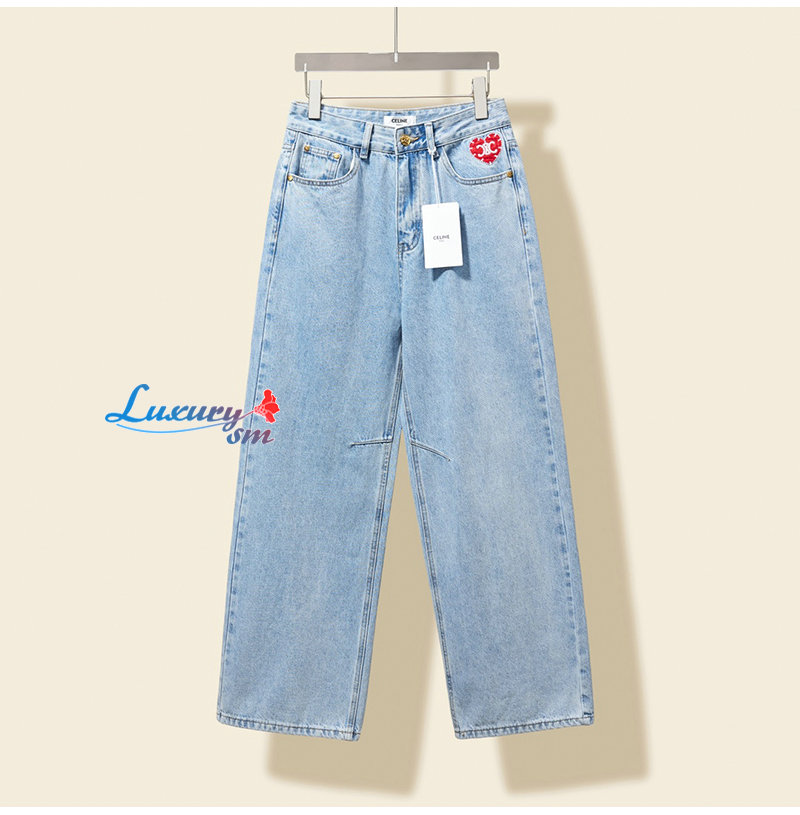 CELINE-06129 셀린느 라이트 블루 아플리케 장식 청바지 여성용