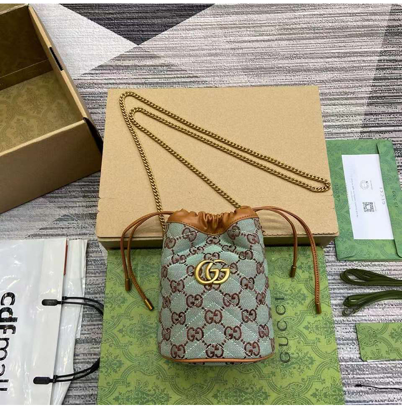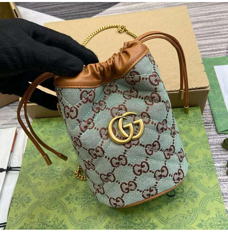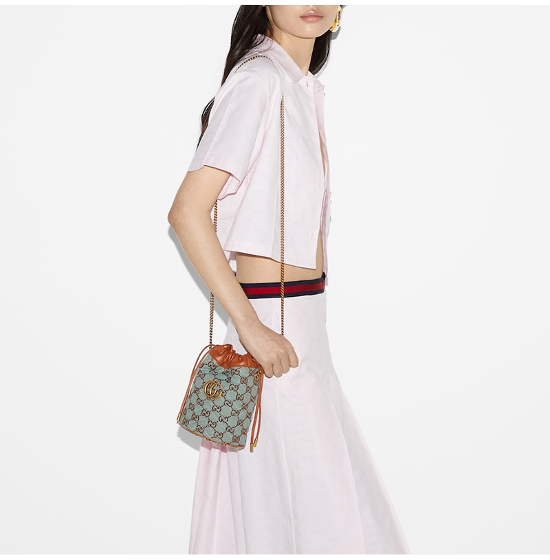[스페셜오더]GUCCI-783175 구찌 페일블루/브라운 GG 수퍼 미니 버킷백 14cm