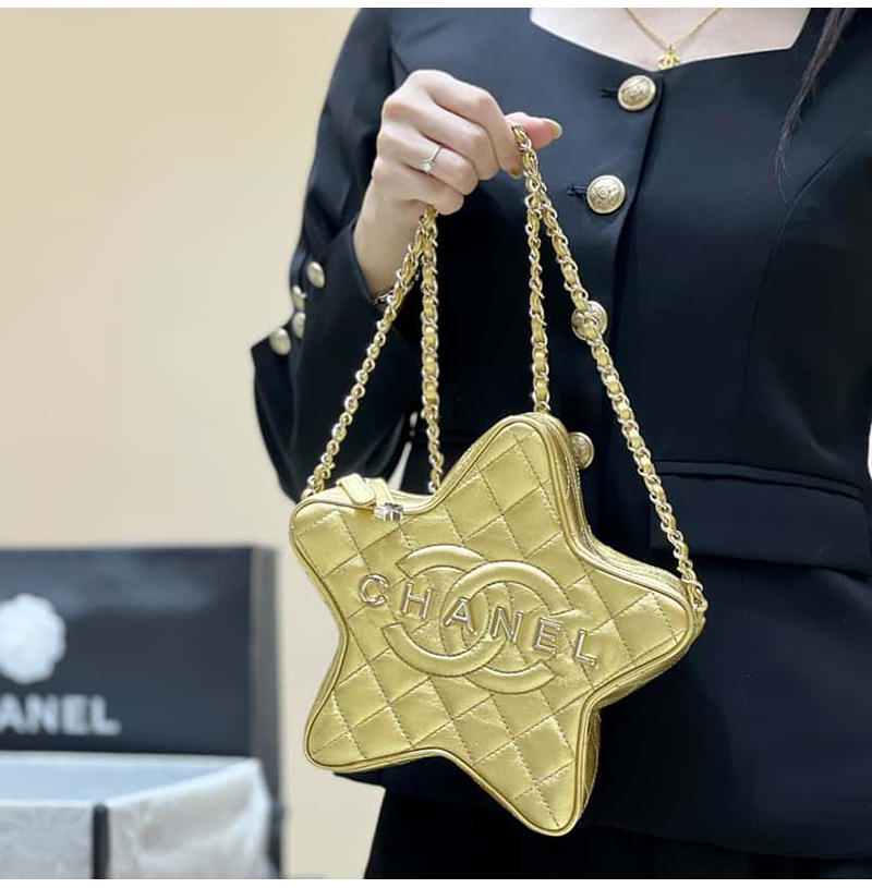 [스페셜오더]CHANEL-AS4579 샤넬 24C 메탈릭 골드 램스킨 스타 핸드백 22.5cm
