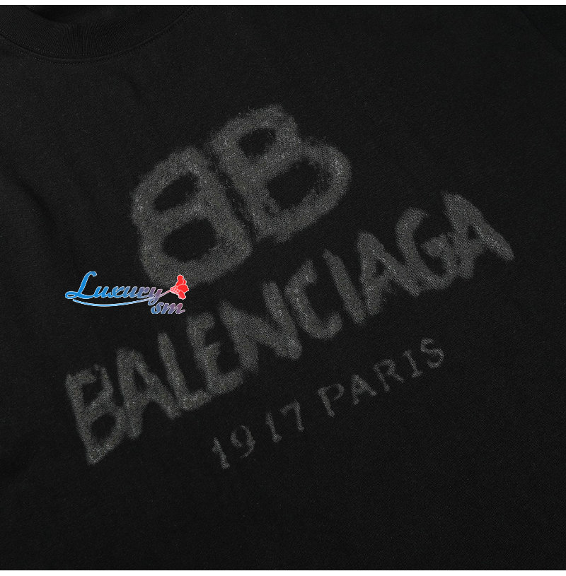 BALENCIAGA-06221 발렌시아가 블랙 프린트 장식 티셔츠 남여공용
