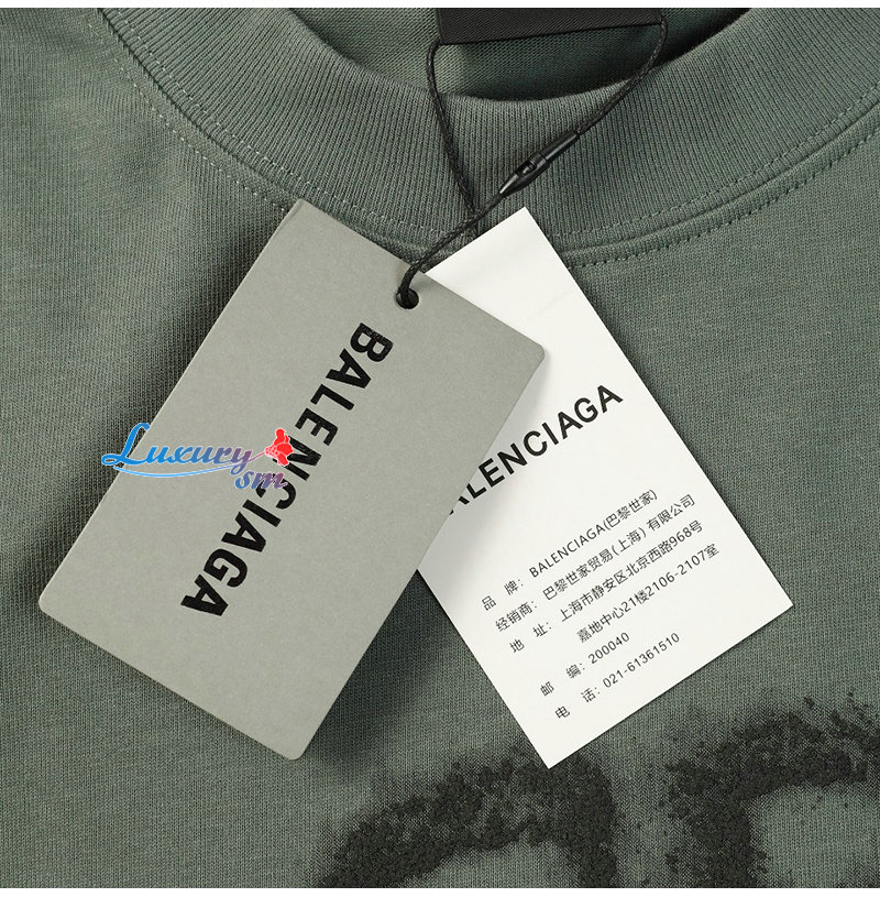 BALENCIAGA-06223 발렌시아가 그린 프린트 장식 티셔츠 남여공용
