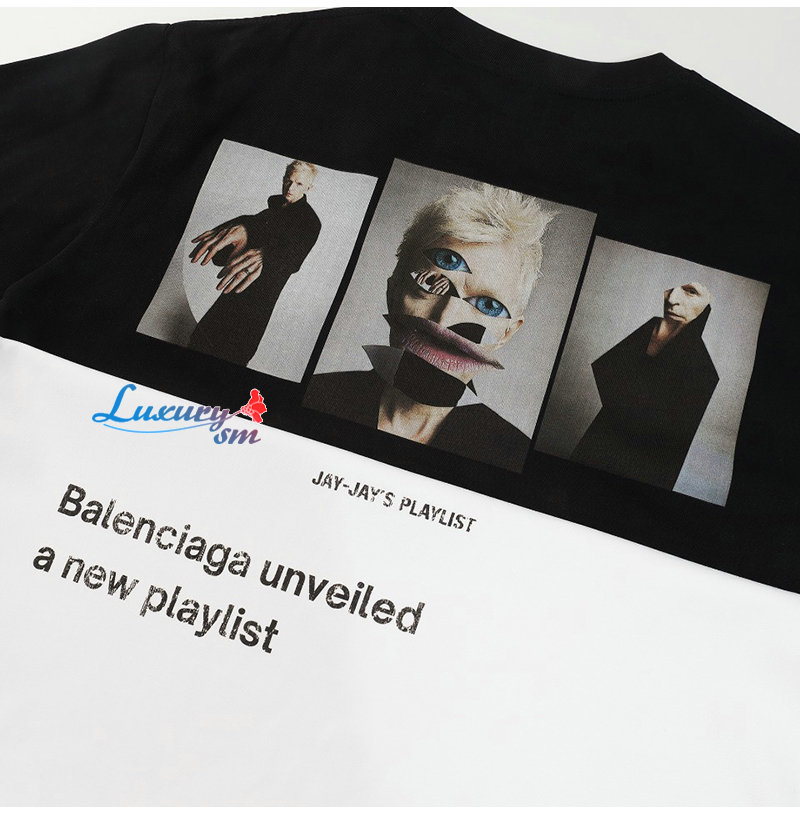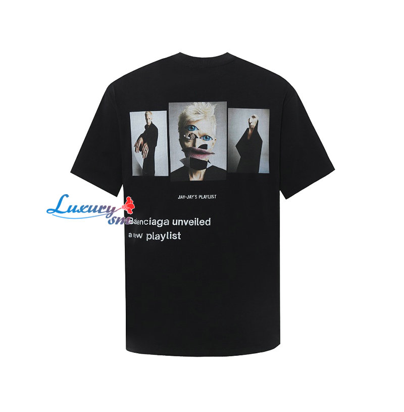 BALENCIAGA-06224 발렌시아가 블랙 프린트 장식 티셔츠 남여공용
