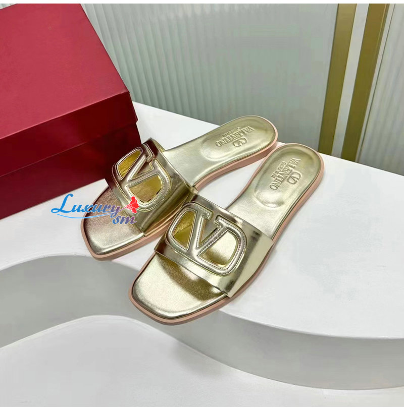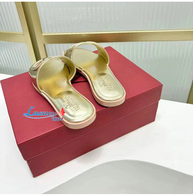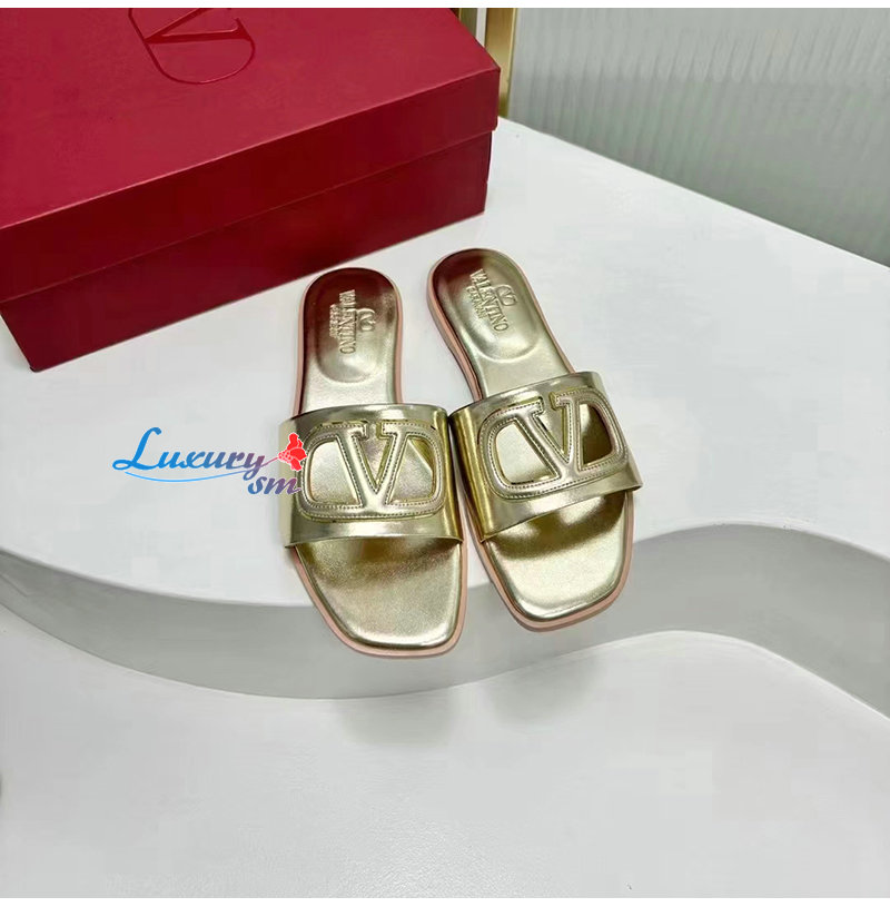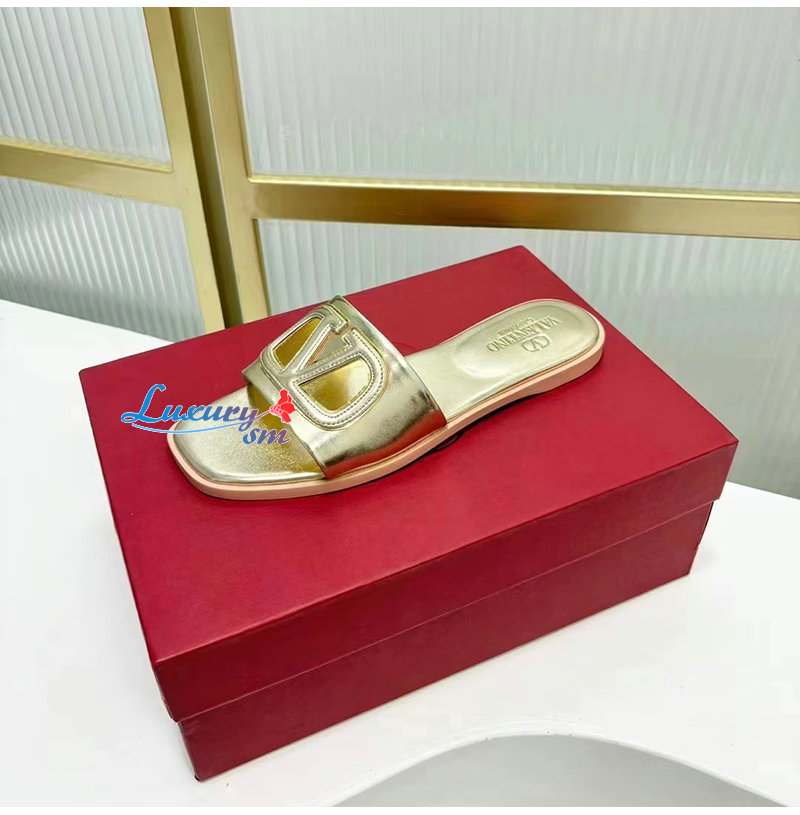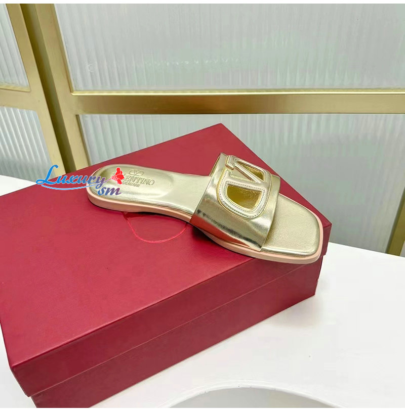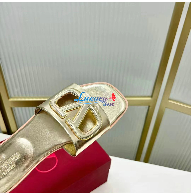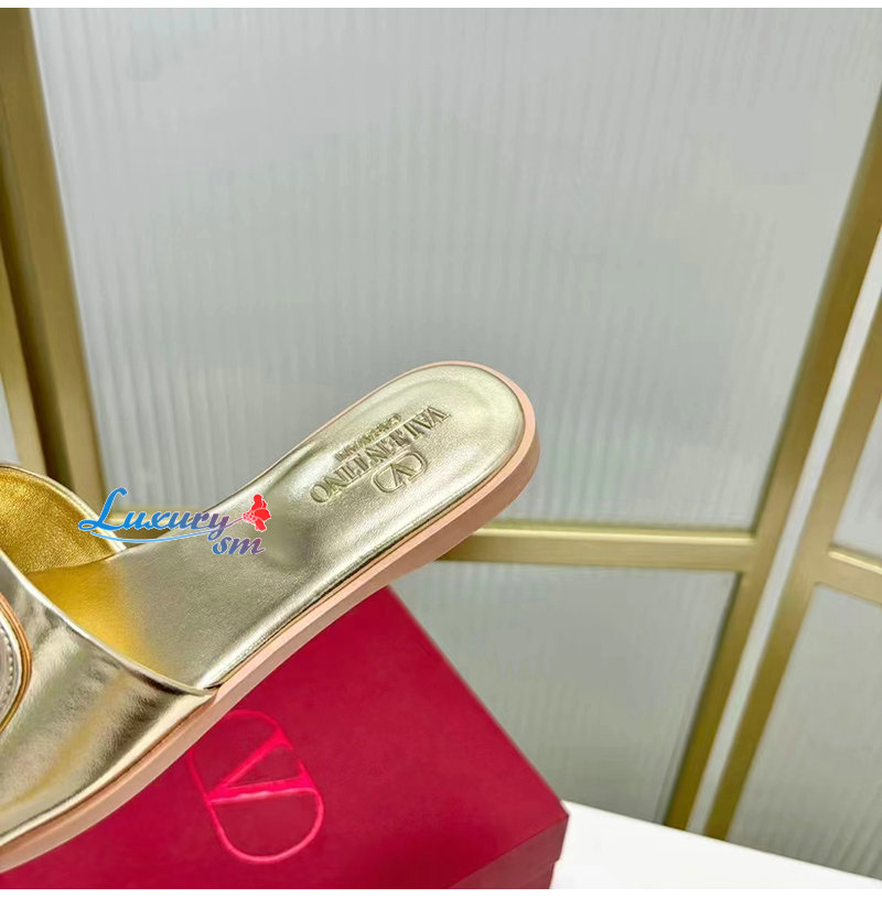 VALENTINO-4W2S0I 발렌티노 골드 브이로고 컷아웃 슬라이드 샌들 여성용