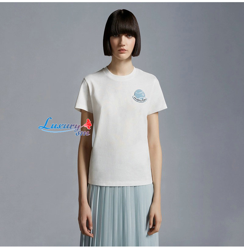 MONCLER-06284 몽클레어 화이트 로고 아플리케 장식 티셔츠 여성용