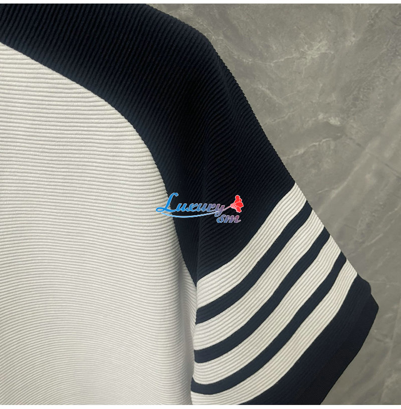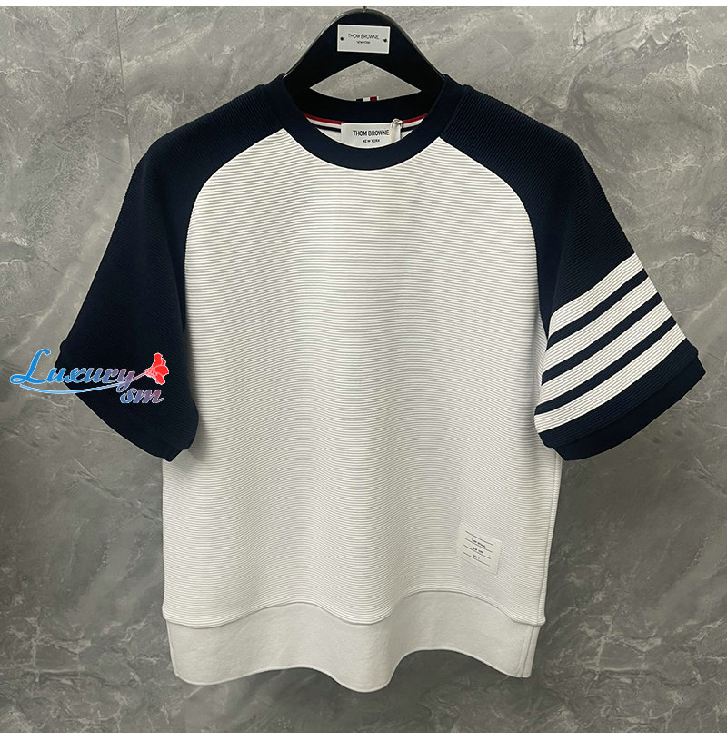 THOM BROWNE-07031 톰 브라운 네이비/화이트 스트라이프 장식 티셔츠 남성용