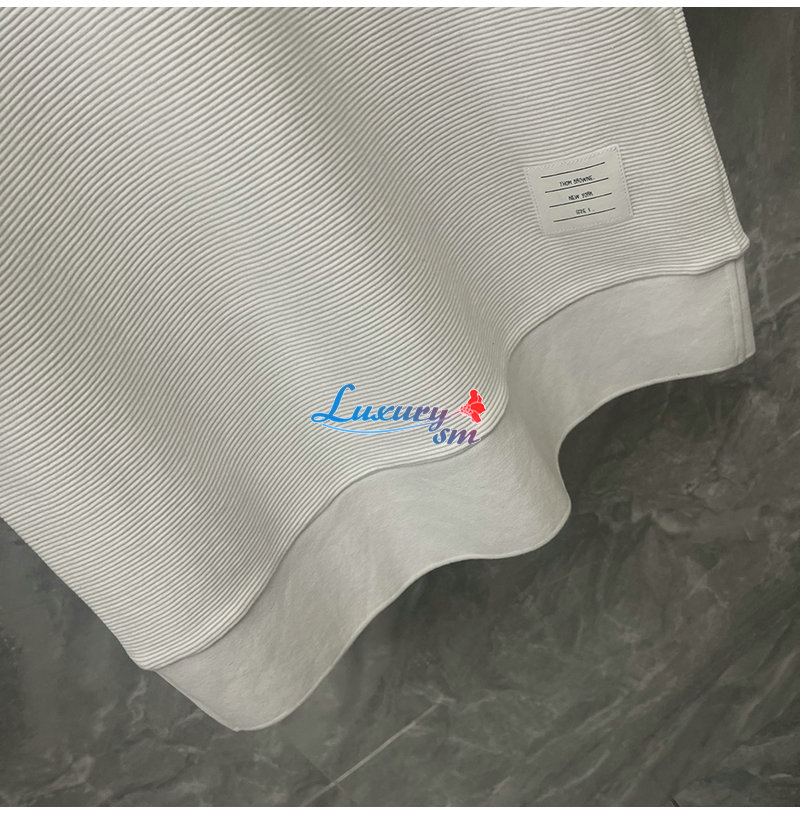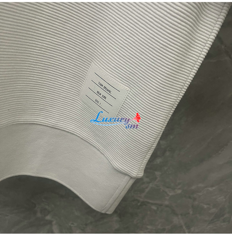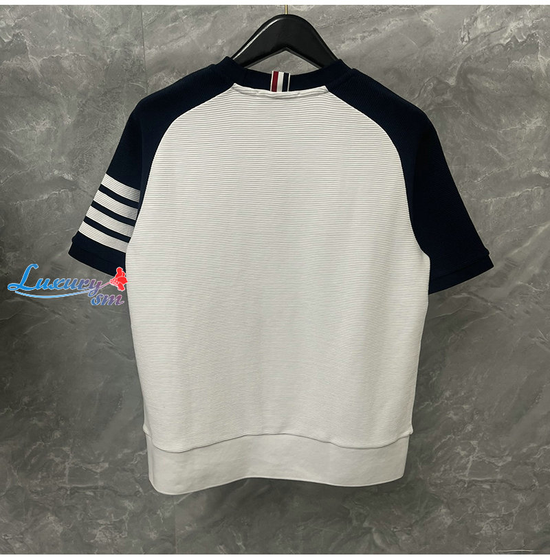 THOM BROWNE-07032 톰 브라운 그레이/화이트 스트라이프 장식 티셔츠 남성용