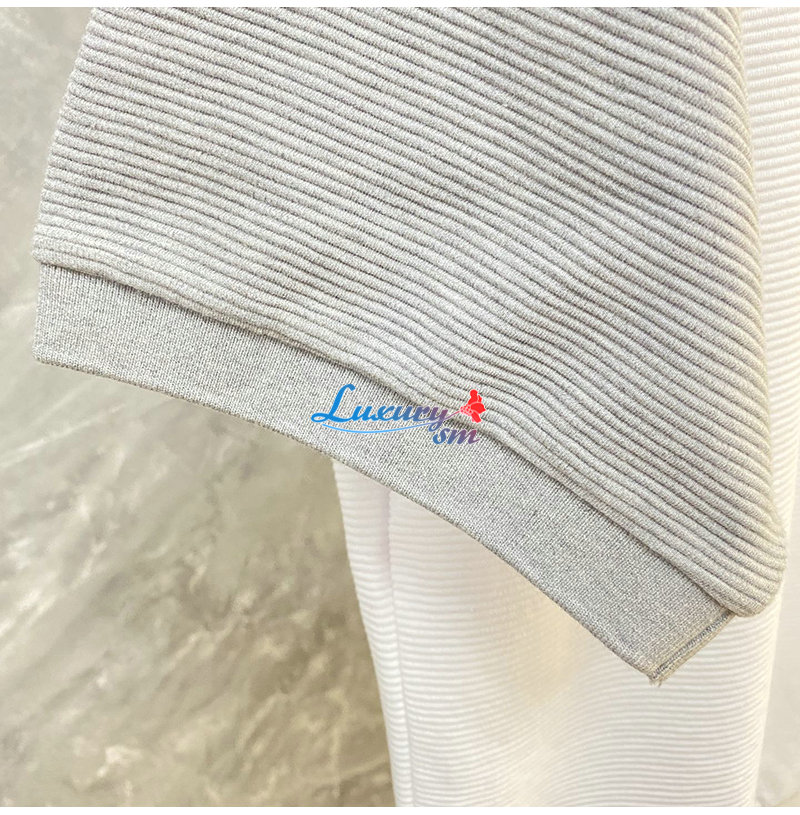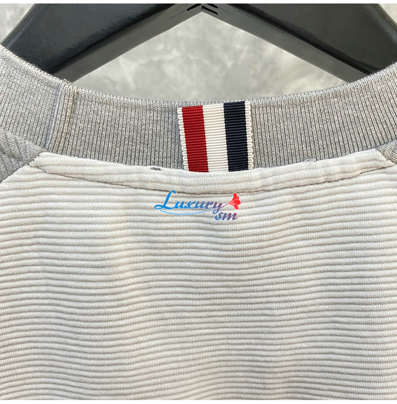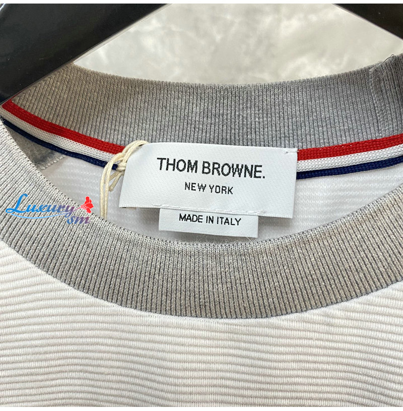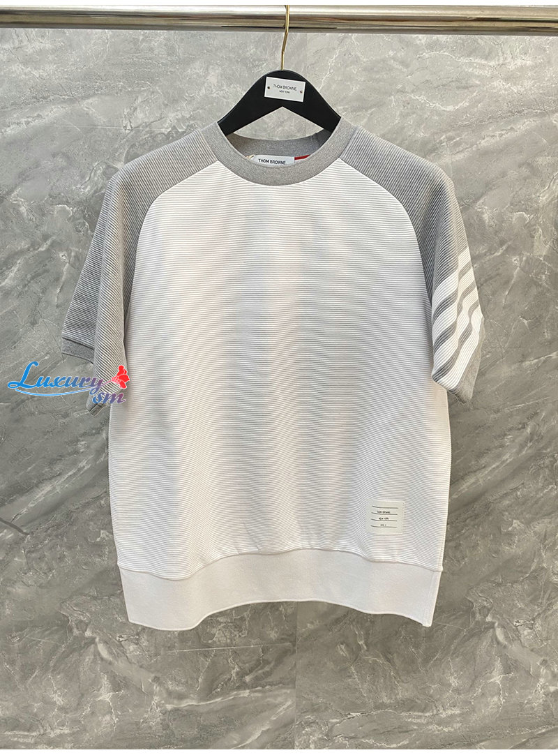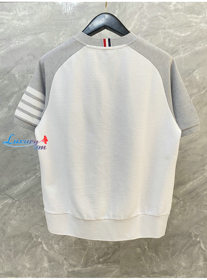 THOM BROWNE-07032 톰 브라운 그레이/화이트 스트라이프 장식 티셔츠 남성용