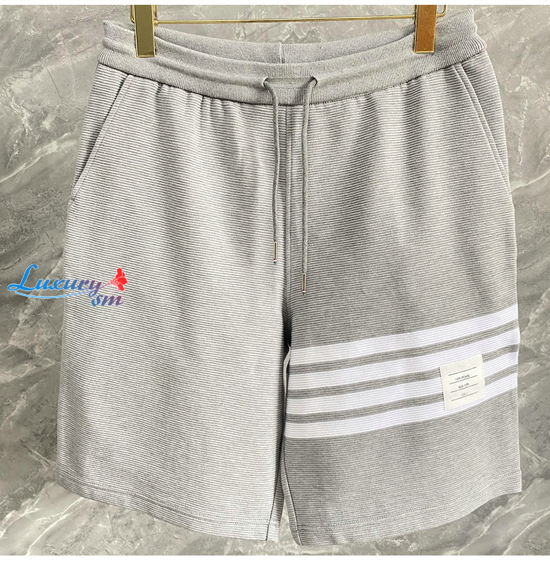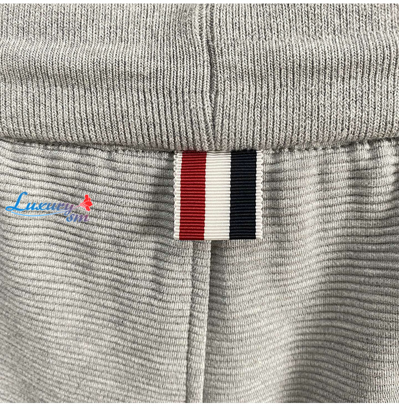 THOM BROWNE-07038 톰 브라운 그레이 스트라이프 장식 스웨트쇼츠 남성용