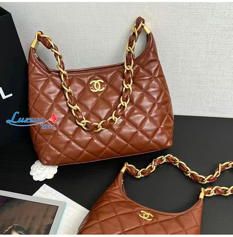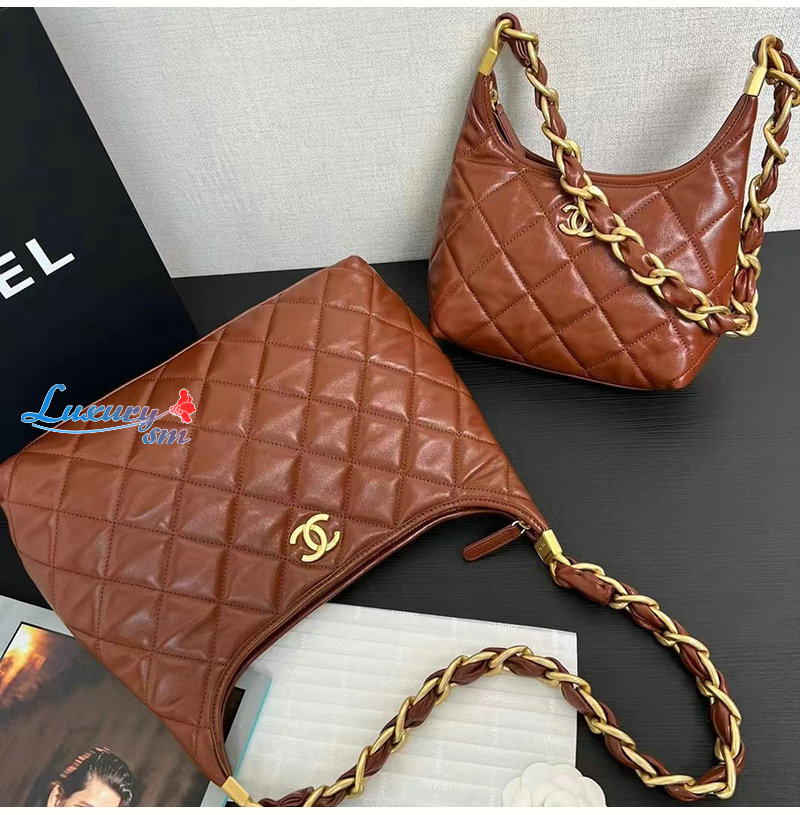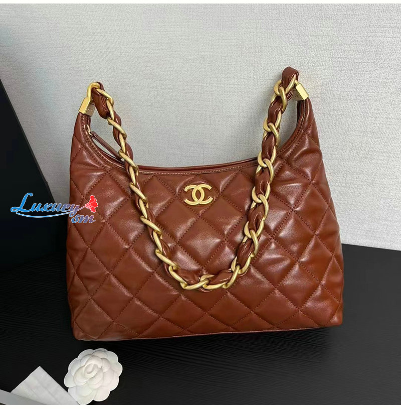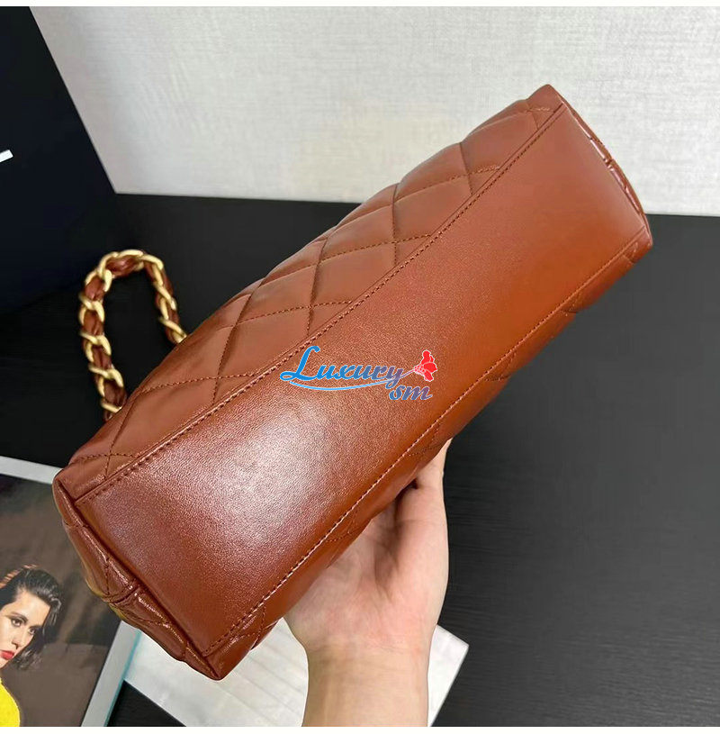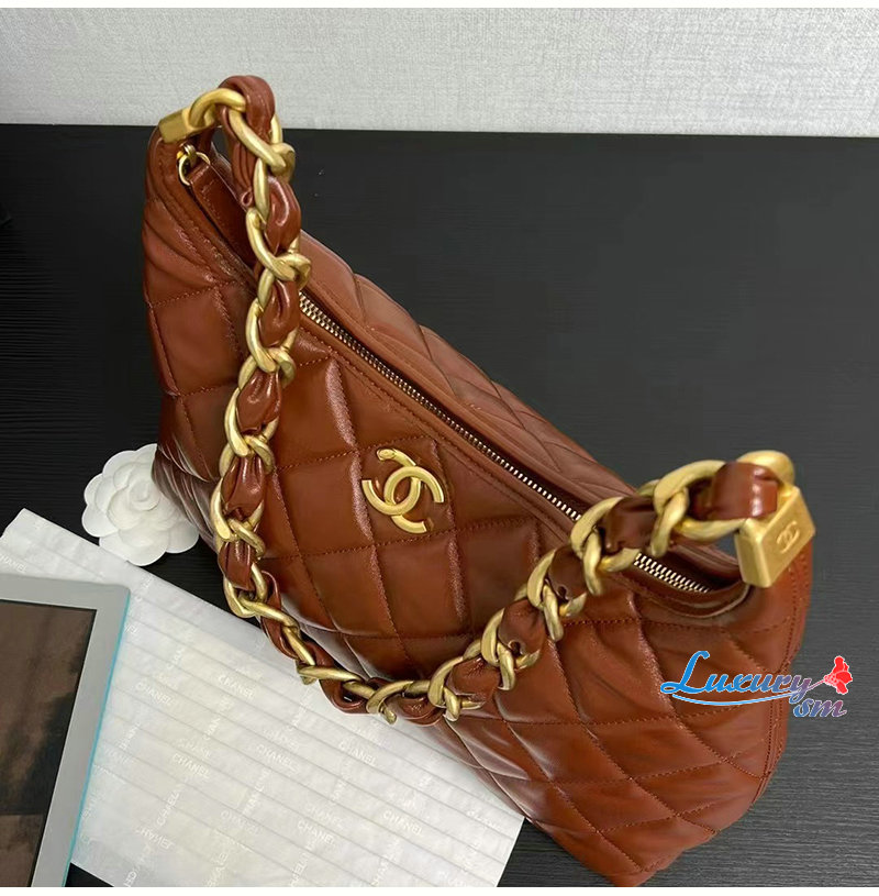 CHANEL-AS4912 샤넬 브라운 램스킨 호보 핸드백