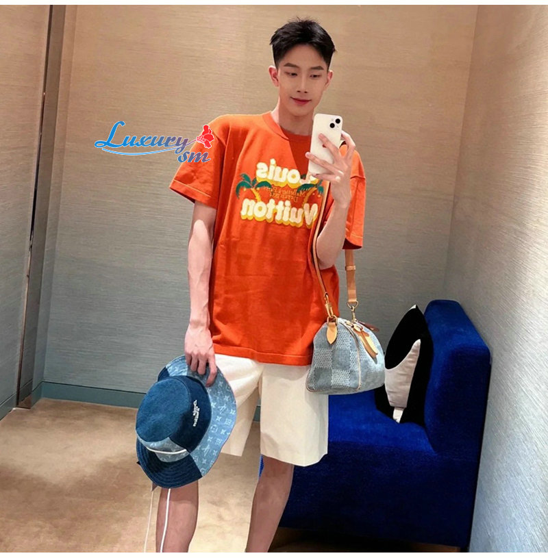 LOUIS VUITTON-07077 루이비통 오렌지 니트 코튼 티셔츠 남여공용
