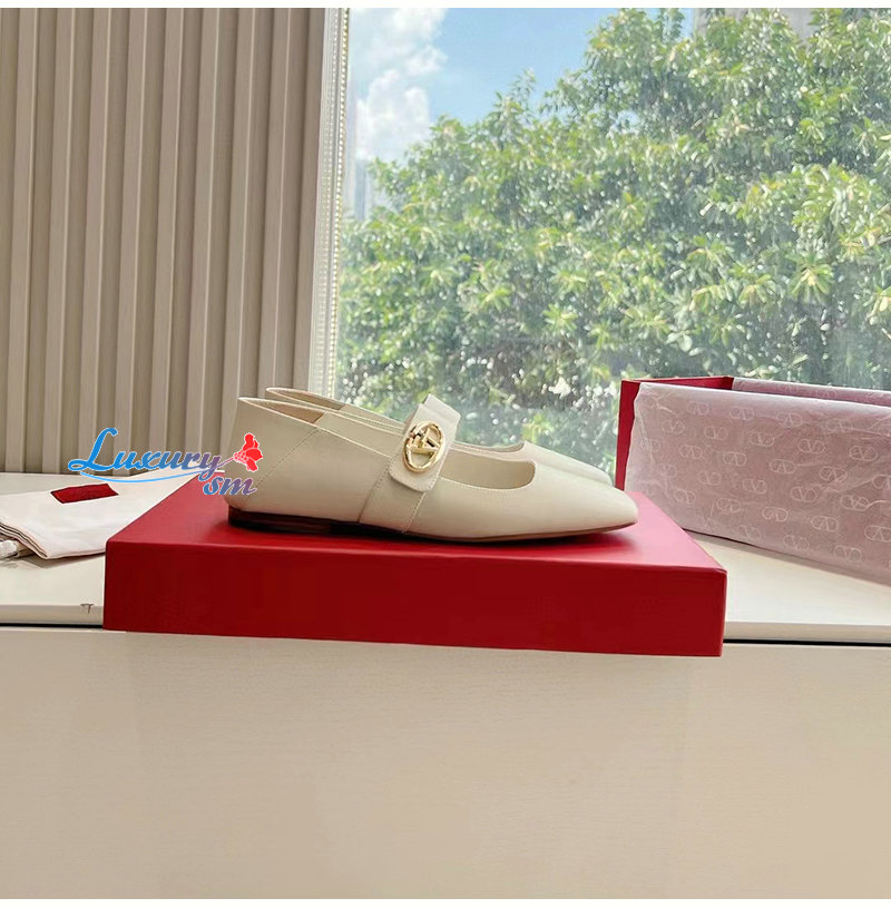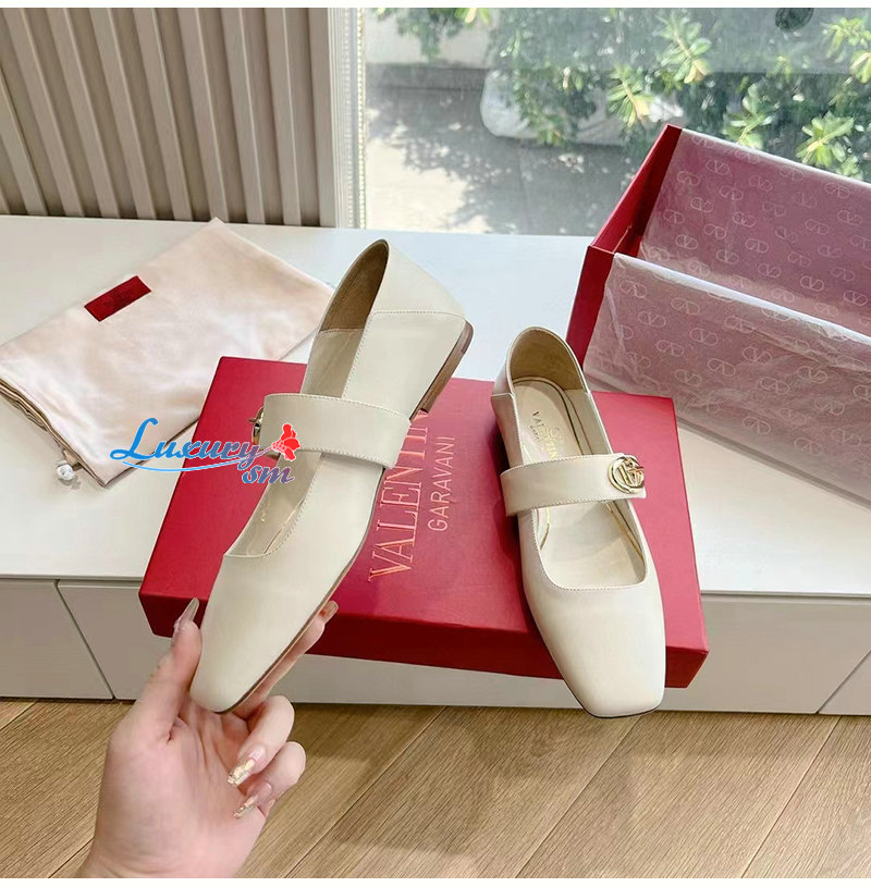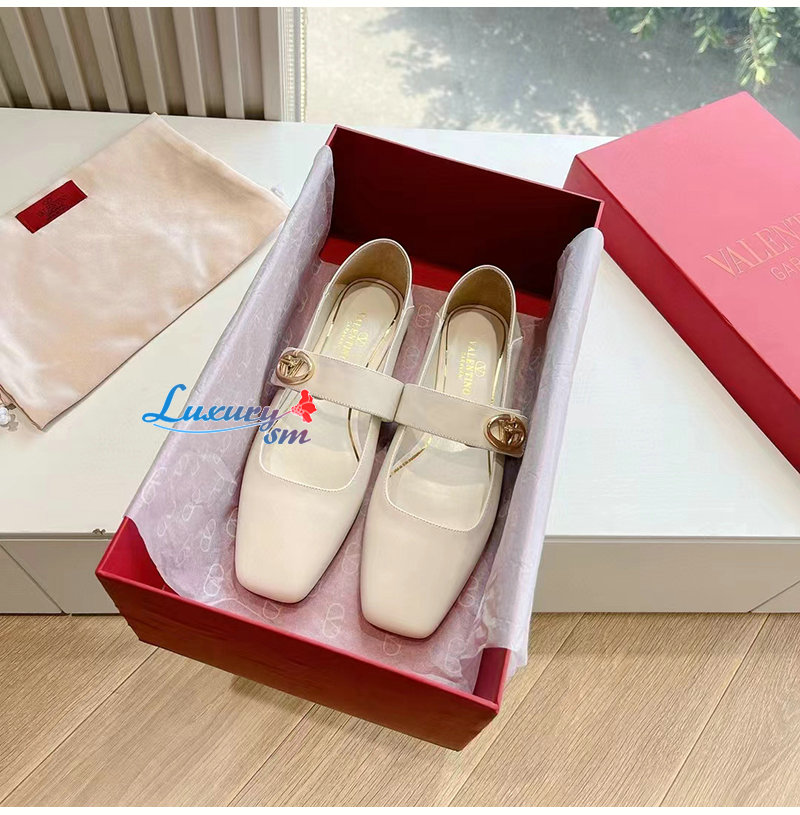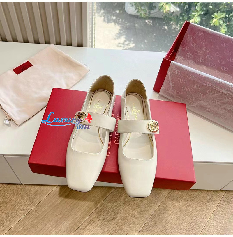 VALENTINO-5W2S0J 발렌티노 화이트 브이로고 락커 메리제인 발레리나